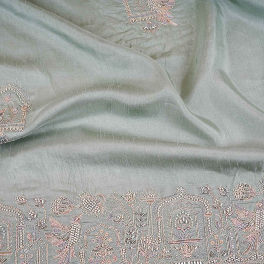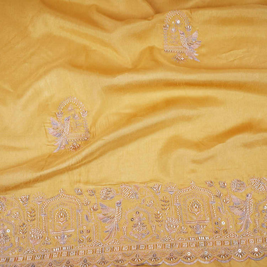 Dola Silk, rooted in centuries of craftsmanship and originating from fibers of the dola plant found in native to the Indian subcontinent. It unfolds a tale that spans cultures and time, bestowing upon it a heritage resonating in every delicate weave. Its allure lies in a luxurious texture, vibrant sheen, and a graceful drape that becomes a second skin for the bride.
