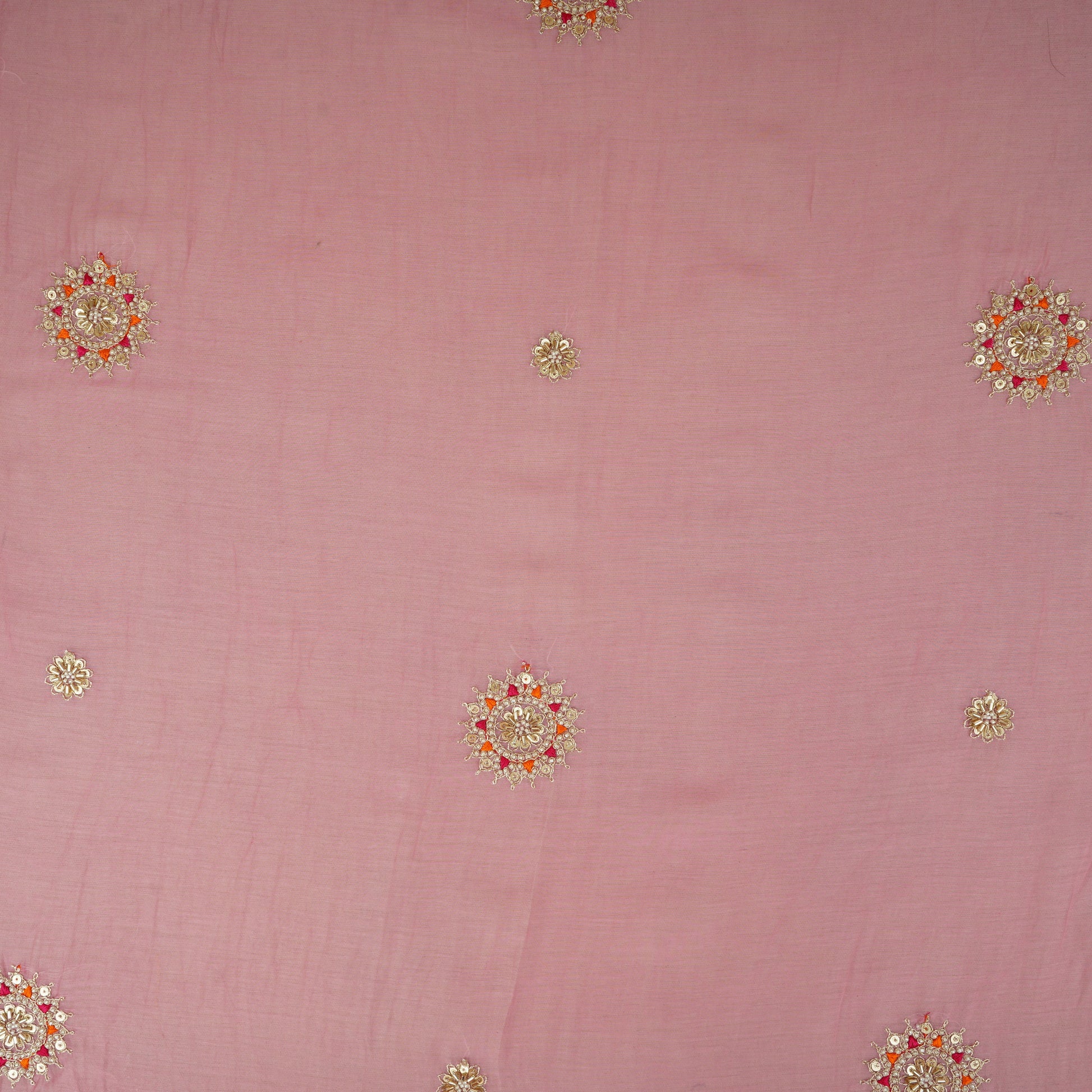 Product Name Baby Pink Floral Cutdana Embroidery Mul Chanderi Fabric SN-30095