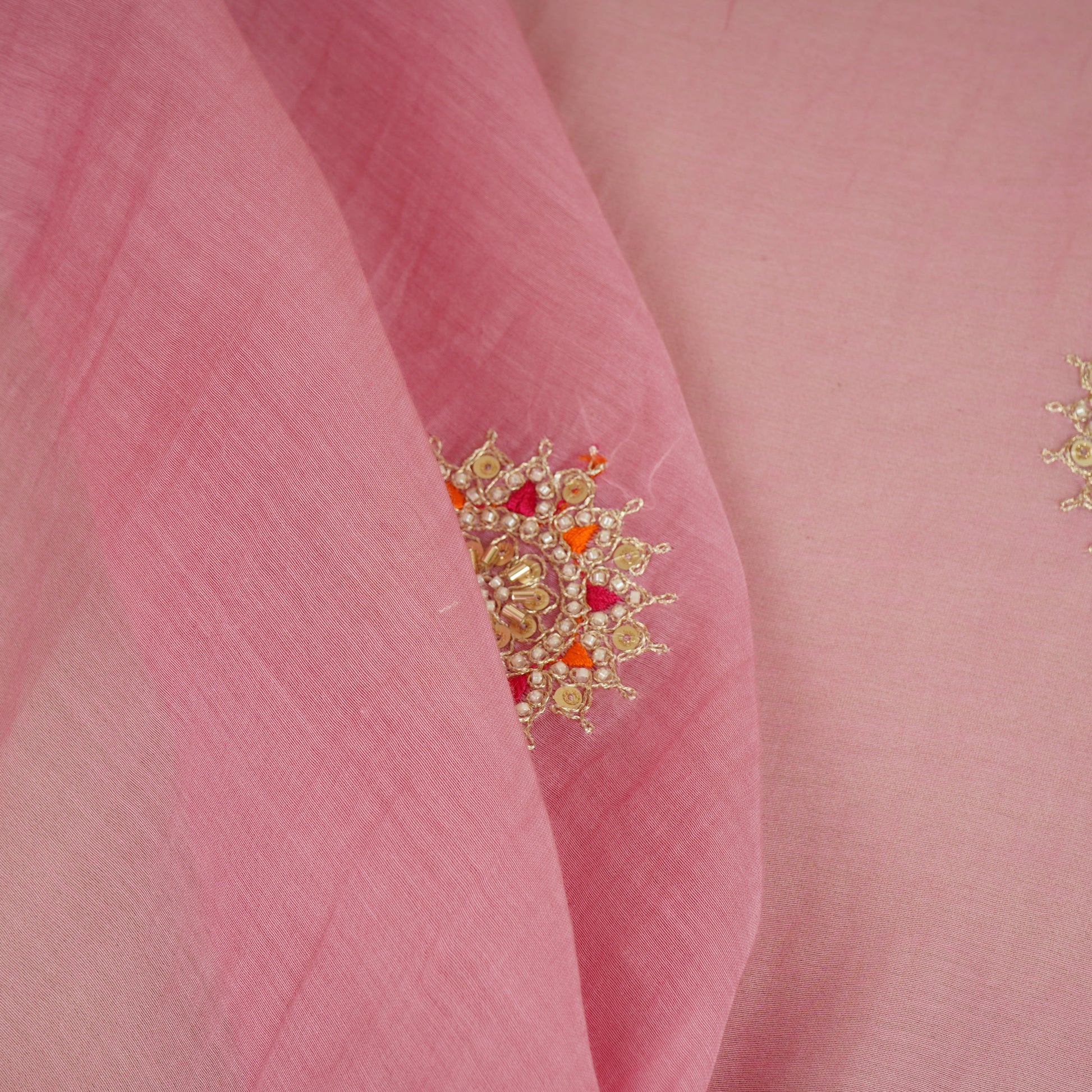 Baby Pink Floral Cutdana Embroidery Mul Chanderi Fabric SN-30095