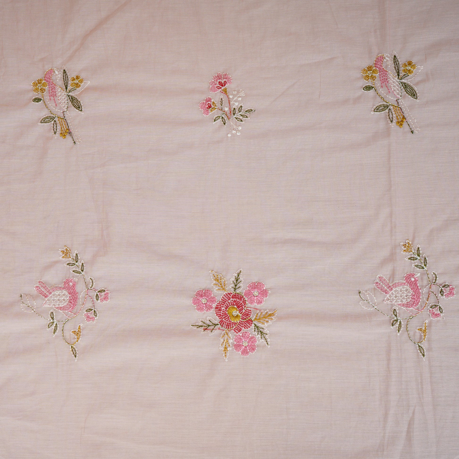 Baby Pink Floral Embroidery Mul Chanderi Fabric DC-29914