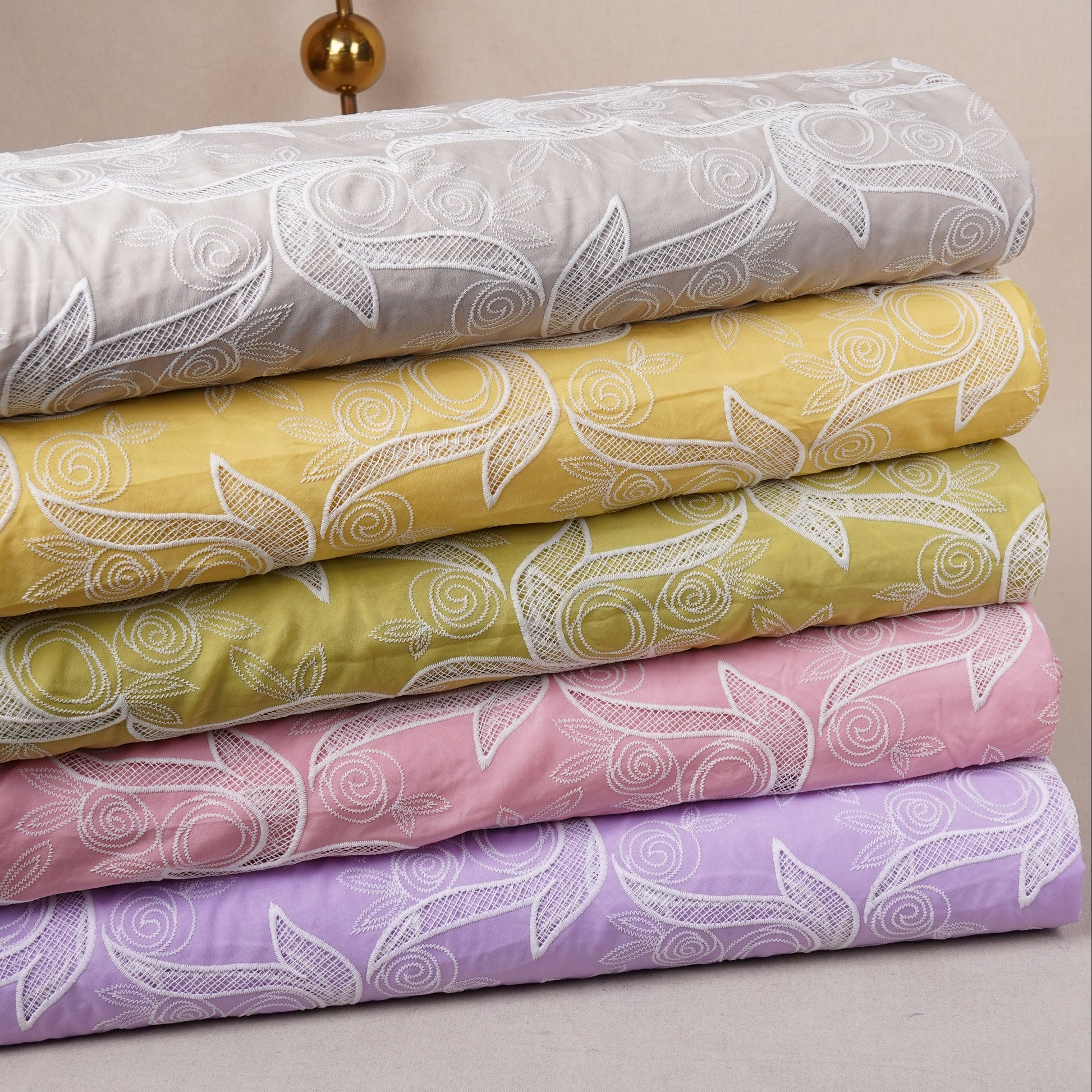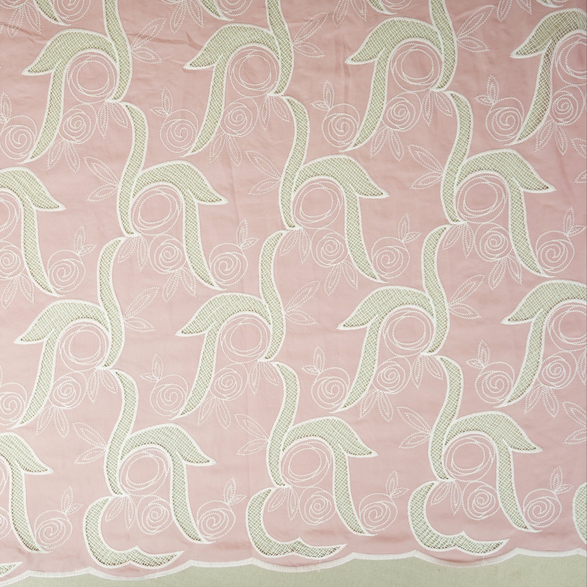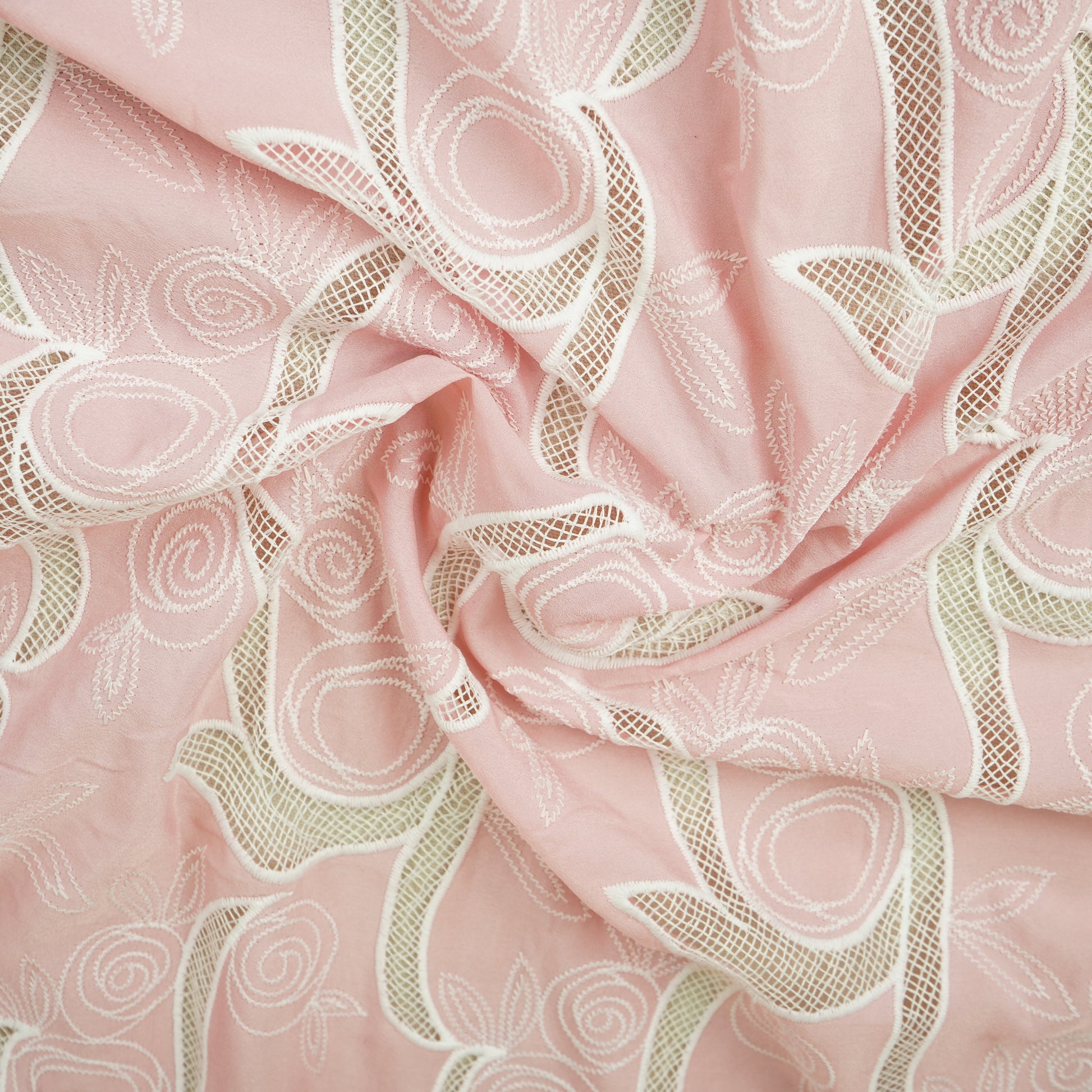 Product Name Baby Pink Floral Embroidery Schiffli Crepe Fabric AF-29920