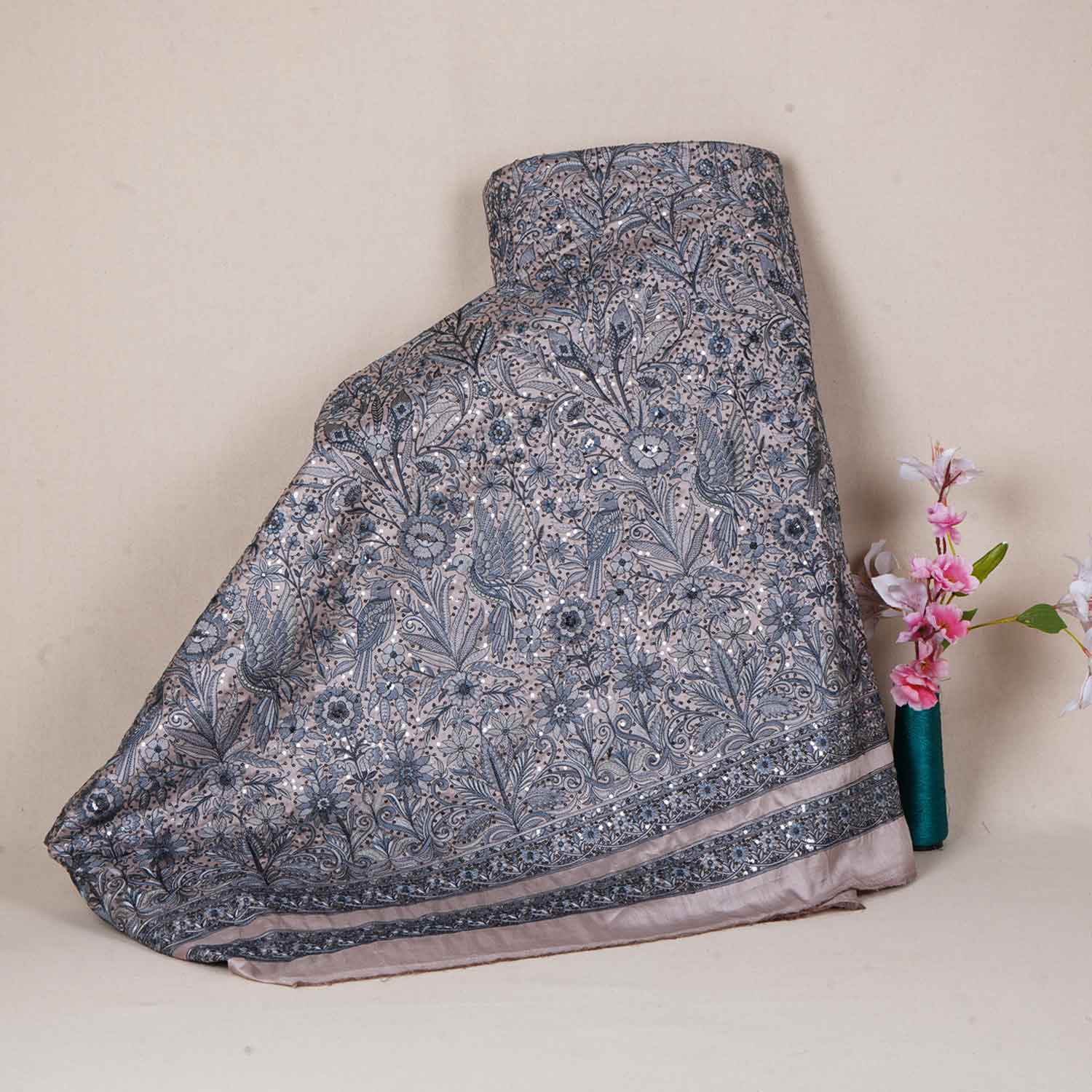 This Beige & Blue Parsi Gara Embroidery Raw Silk Fabric merges intricate Parsi gara designs with soft raw silk. Perfect for lehengas, kurtas, or festive ensembles that showcase artisanal charm.