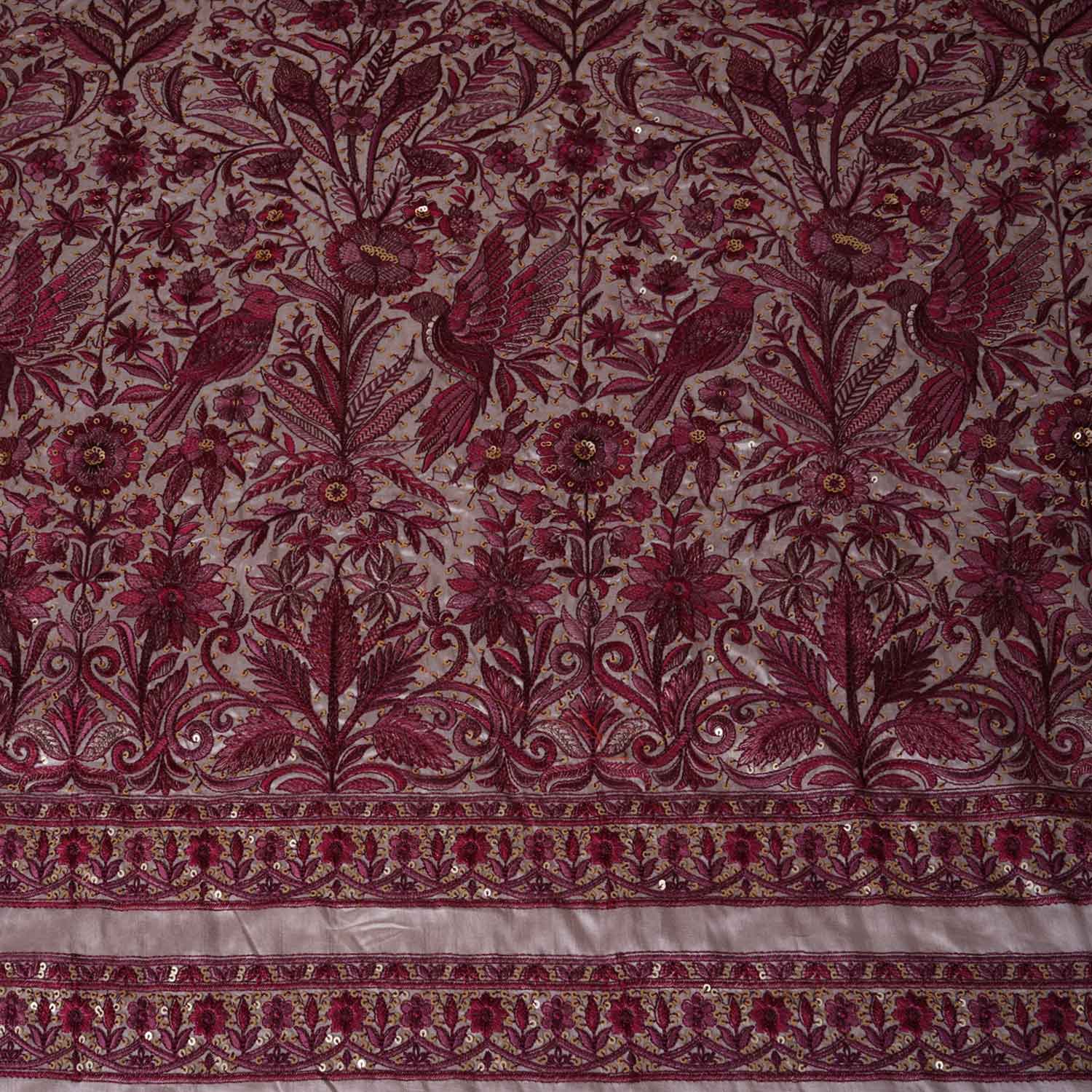 This Beige & Pink Parsi Gara Embroidery Raw Silk Fabric merges intricate Parsi gara designs with soft raw silk. Perfect for lehengas, kurtas, or festive ensembles that showcase artisanal charm.