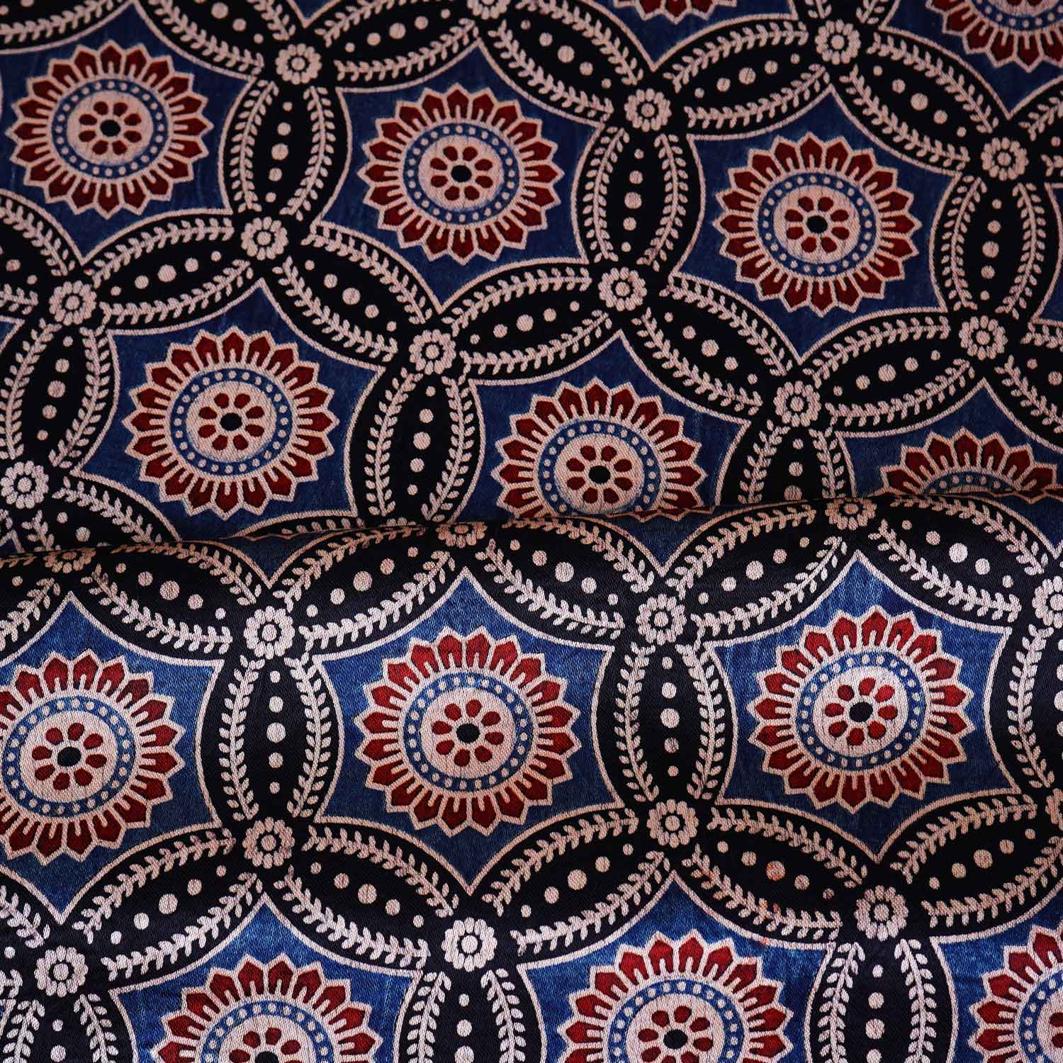 Product Name Black Ajrakh Print Mashru Silk Fabric EEG-28641