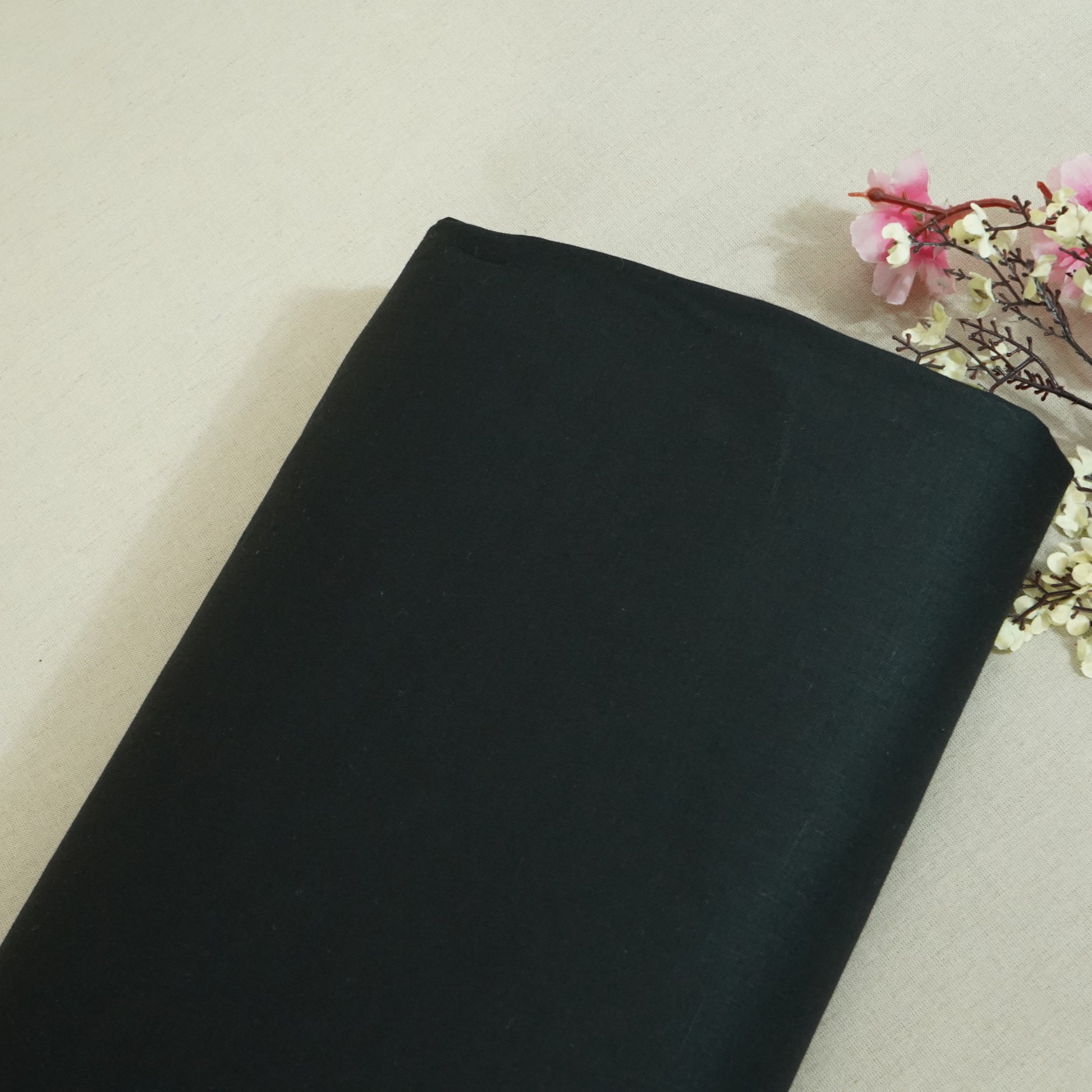 This Black solid cotton linen fabric combines breathable comfort with a soft matte finish. Its cool pastel tone is ideal for relaxed summer wear, smart casuals, or understated ethnic pieces.