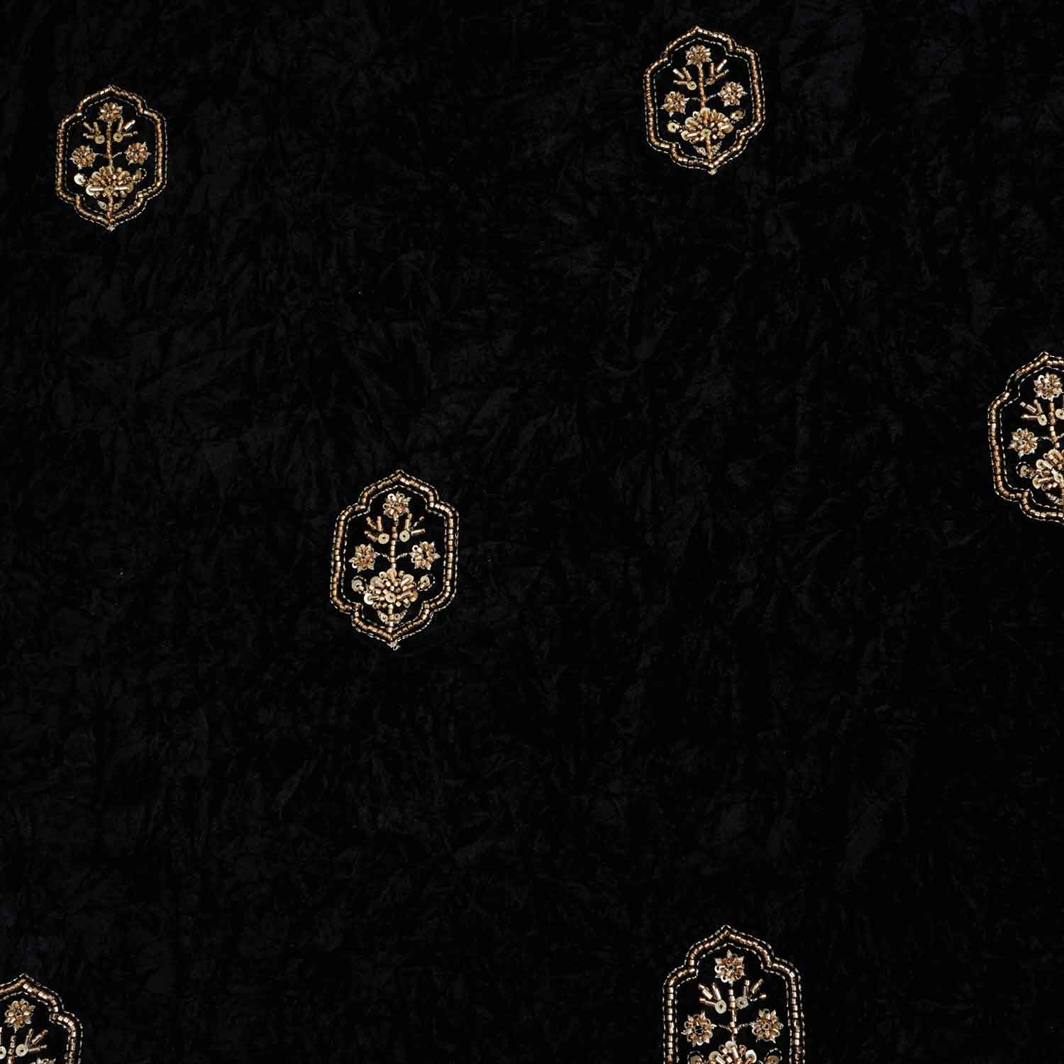 Product Name Black Floral Cutdana Crushed Velvet Fabric SC-28300