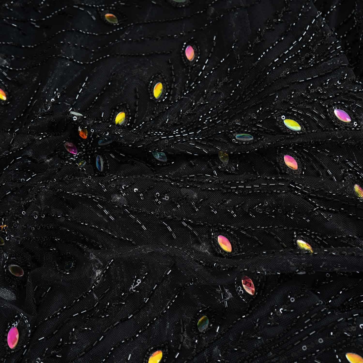 Black Heavy Sequins Rhinestone Embroidery Net Fabric