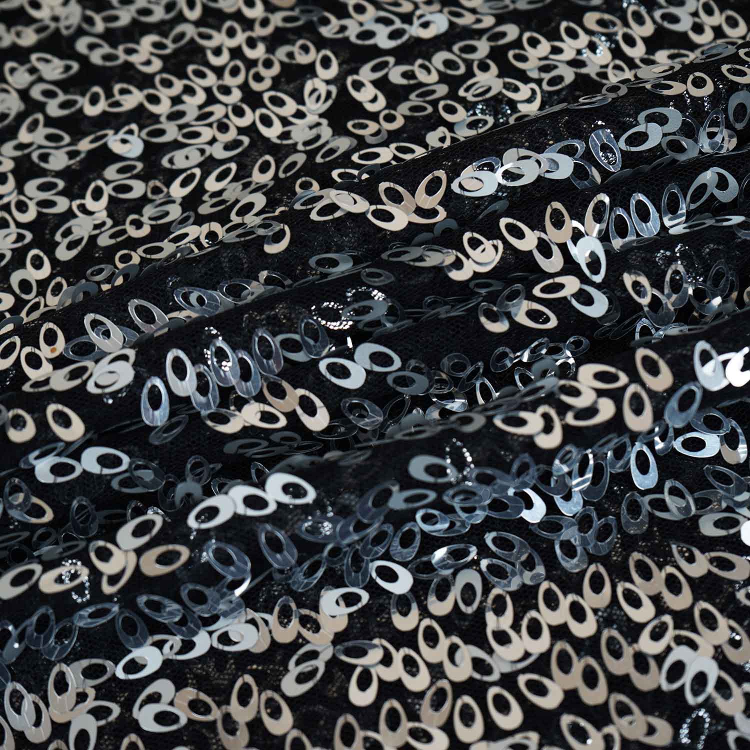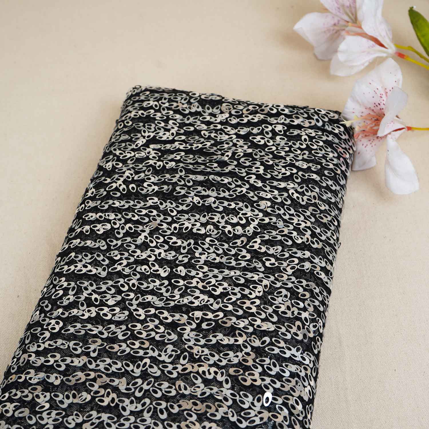 The net fabric provides a delicate, semi-transparent background for the beadwork, which can be arranged in various patterns and designs. This type of fabric is often used for special occasion garments such as bridal gowns, evening dresses, and cocktail dresses, as well as for accessories such as purses and clutches.