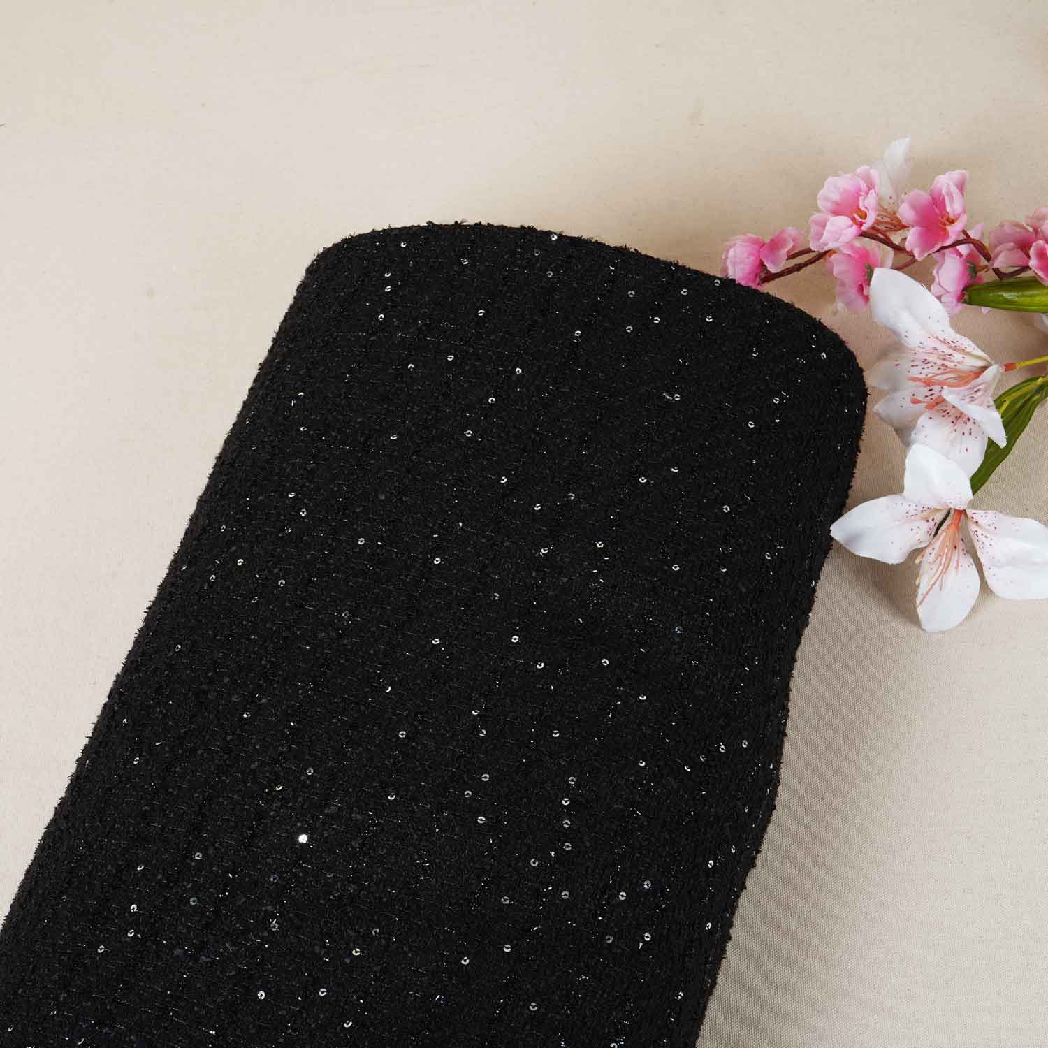 This black Tweed fabric merges regal hues with artisanal charm. The shimmer of Tweed meets the soul of heritage craft, creating a rich base for lehengas, kurtas, or festive sets that exude cultural pride.