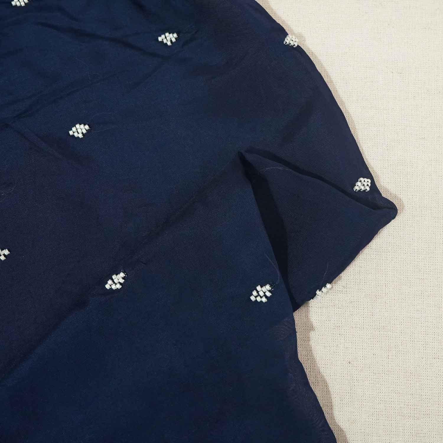 The Blue Embroidery Cut Dana Organza Fabric showcases delicate craftsmanship with shimmering cut dana work on a sheer organza base. Its lightweight texture and elegant embroidery make it perfect for sarees, lehengas, dupattas, and festive ensembles. A luxurious choice, it adds sparkle, grace, and sophistication to any designer outfit or occasion.