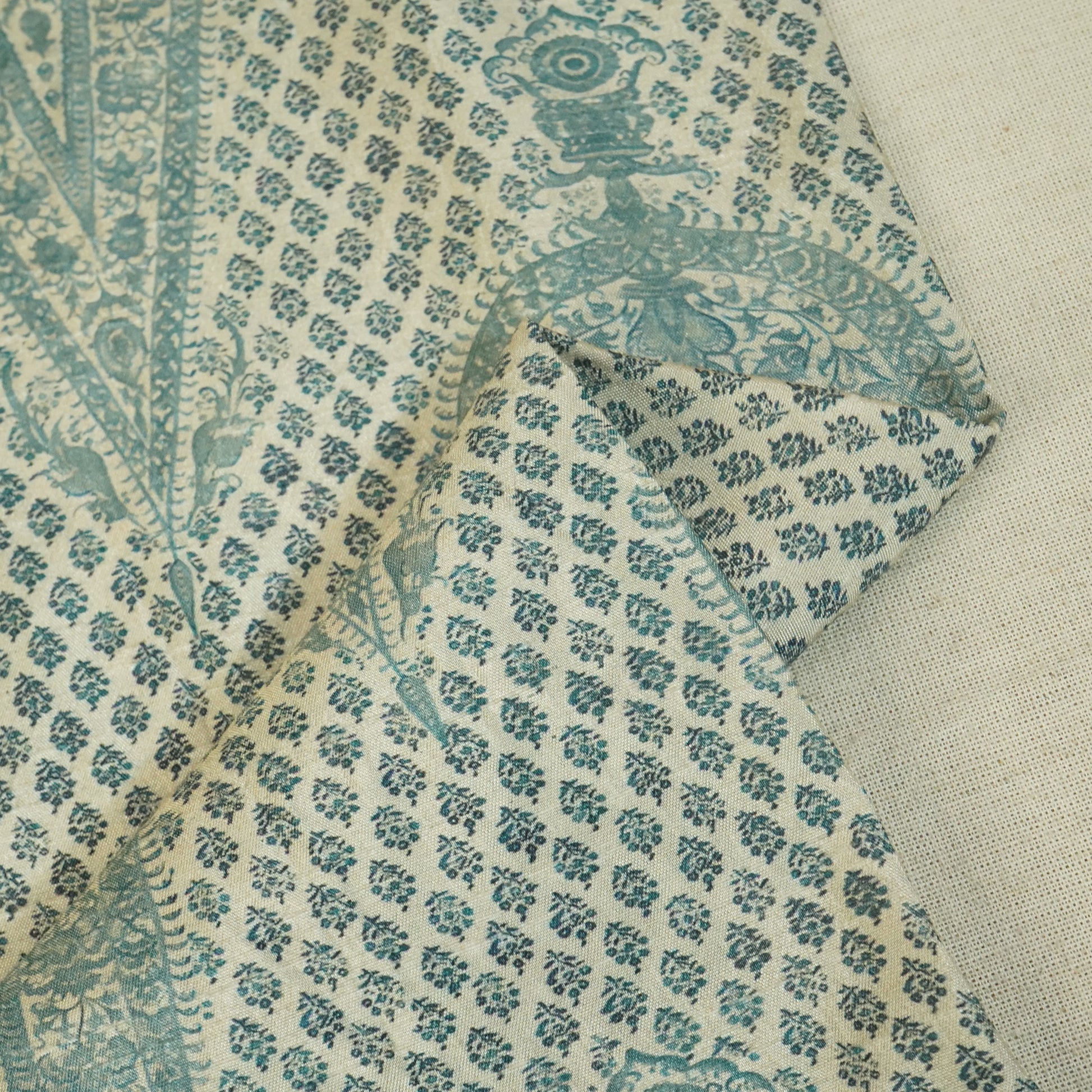 Blue Floral Raw Silk Fabric, a perfect blend of elegance and ethnicity. Its fluid drape and subtle tone make it ideal for formal kurtas, dupattas, or gowns where understated tradition is matched with contemporary style.