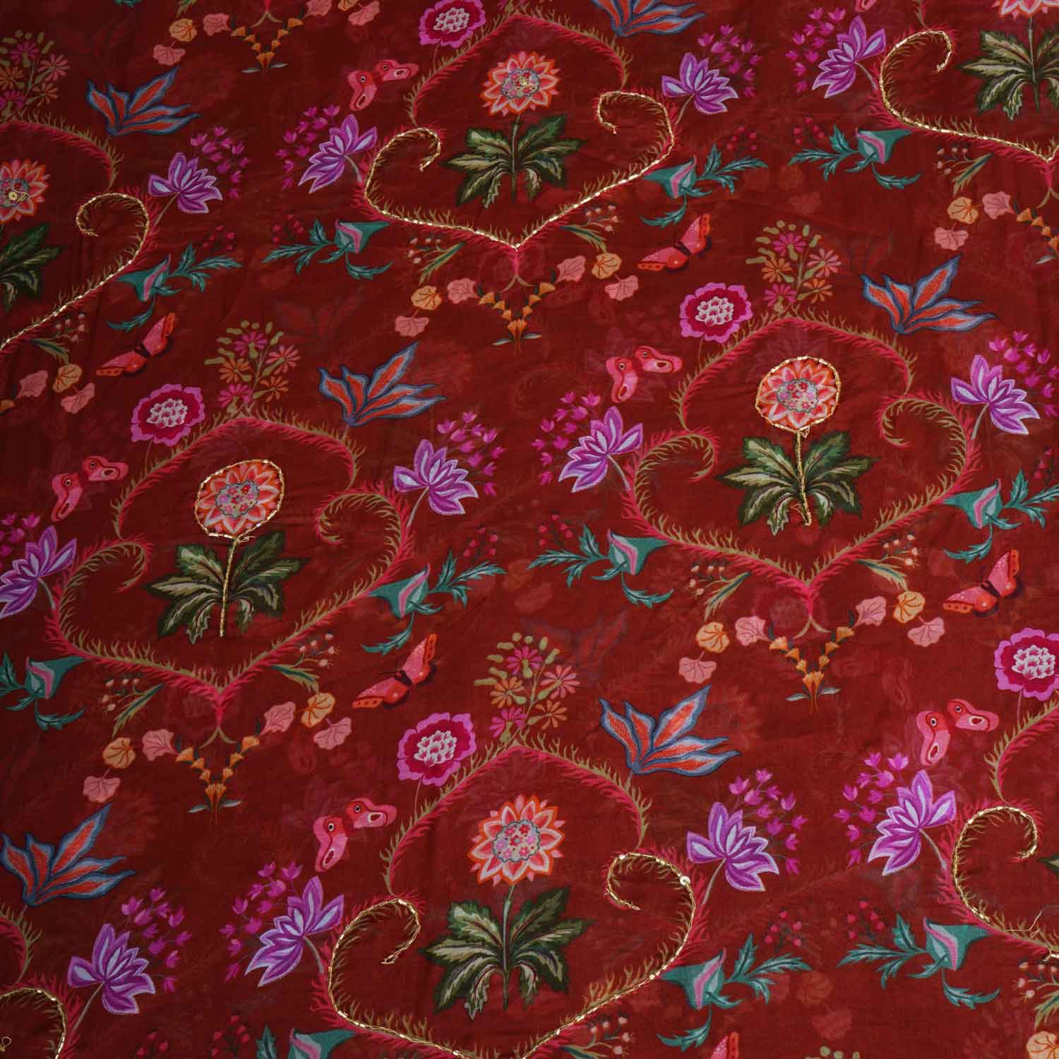 Brown Cutdana Hand Work Floral Print Organza Fabric MT-28293