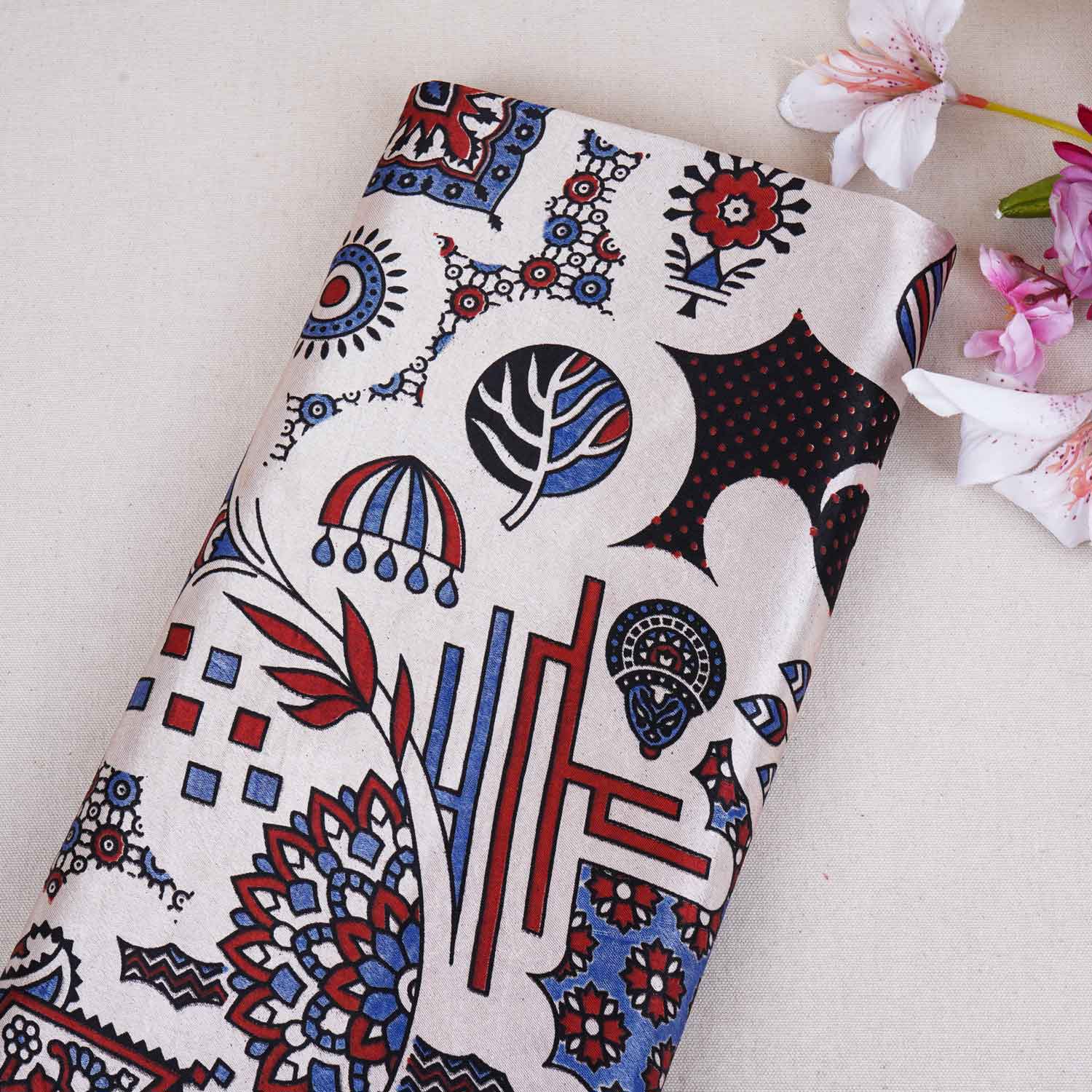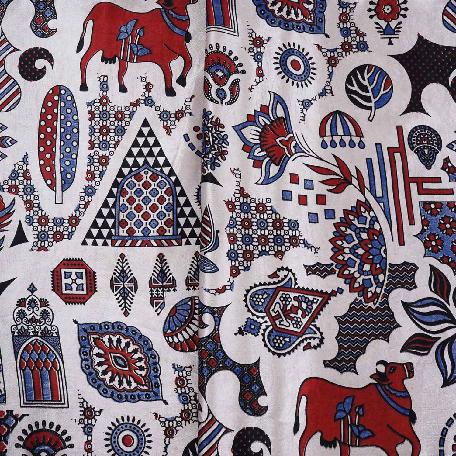 Cream Ajrakh Print Mashru Silk Fabric EEG-28644