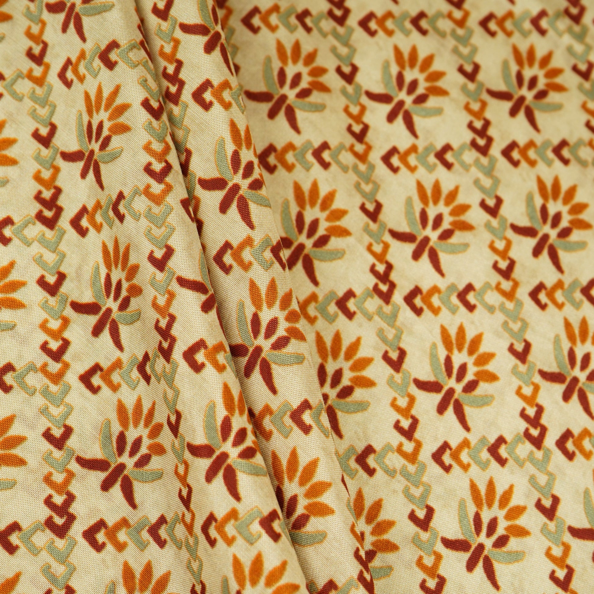 Product Name Cream Floral Print Muslin Fabric MF-30188