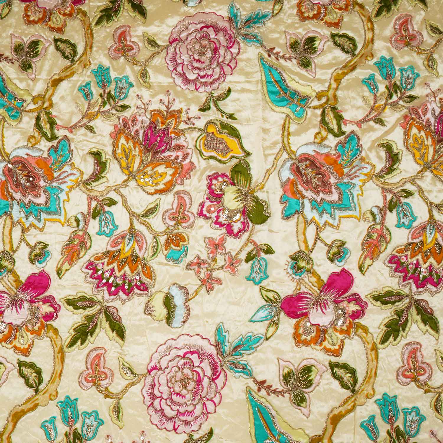Product Name Cream Position Print Zari Embroidery Crepe Fabric NF-28008