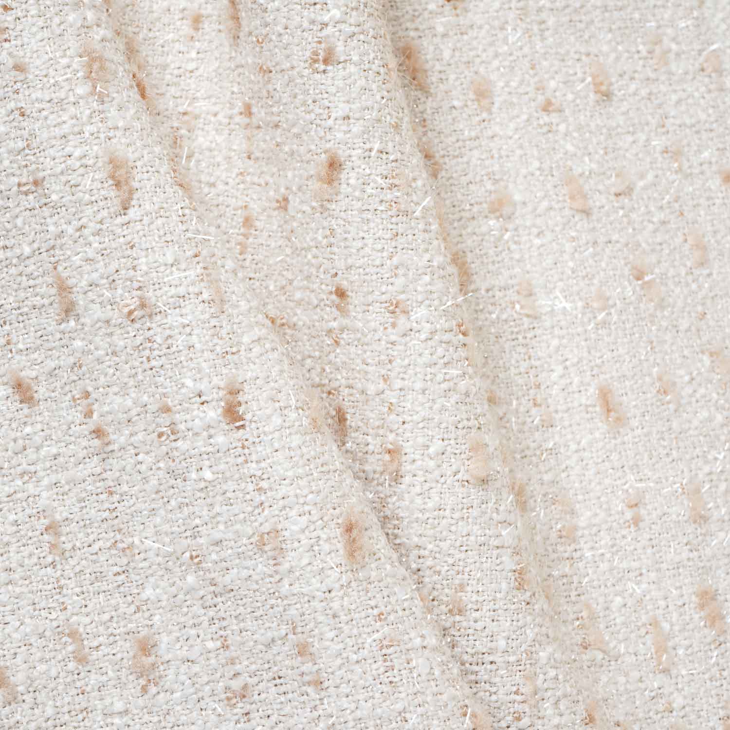 This cream Tweed fabric merges regal hues with artisanal charm. The shimmer of Tweed meets the soul of heritage craft, creating a rich base for lehengas, kurtas, or festive sets that exude cultural pride.