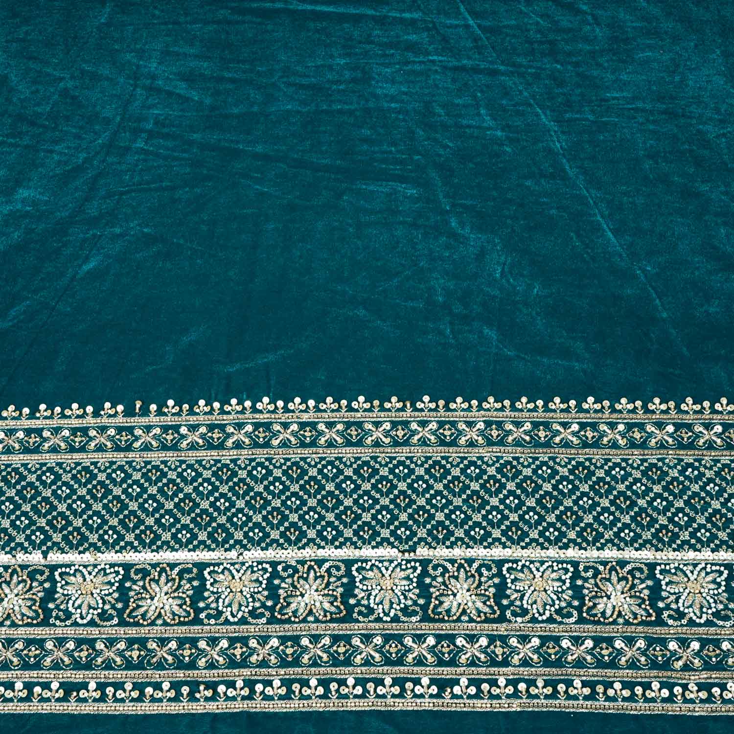 Green Border Work Cutdana Embroidery Micro Velvet 9000 SC-27999