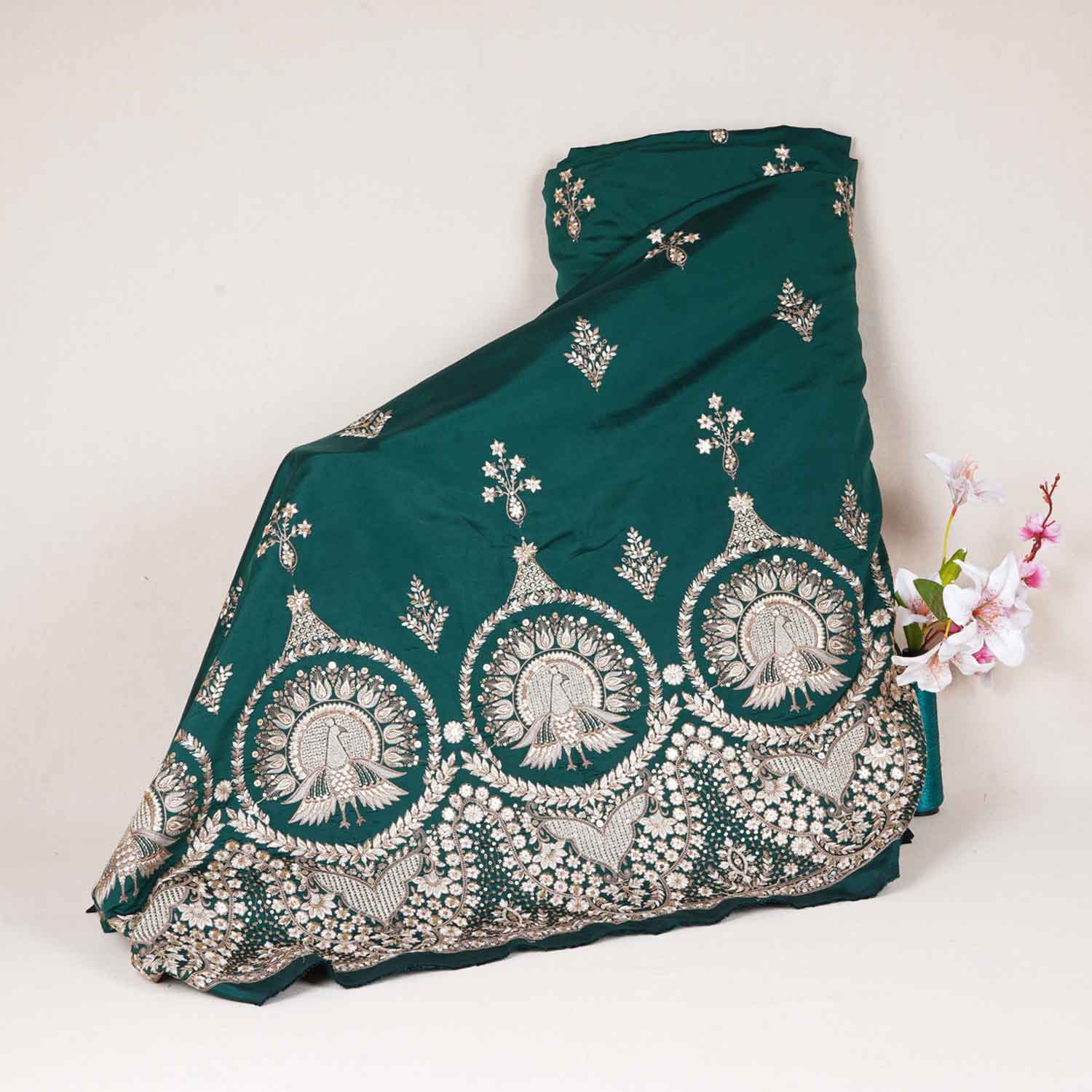 Green Parsi thread Embroidery Russian Silk Fabric DRAJ-28032