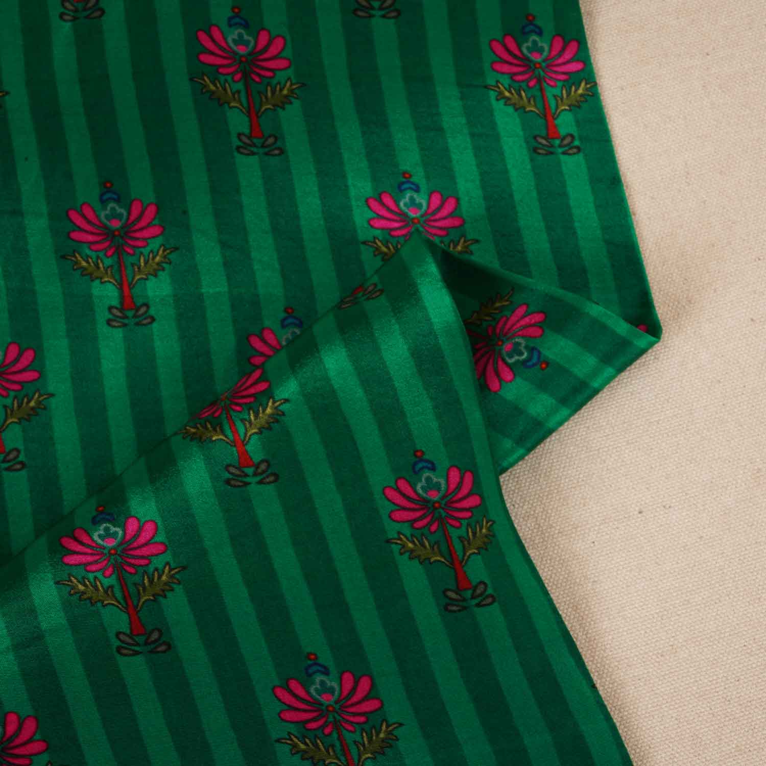 Green Strips Floral Print Crepe Fabric MT-28241