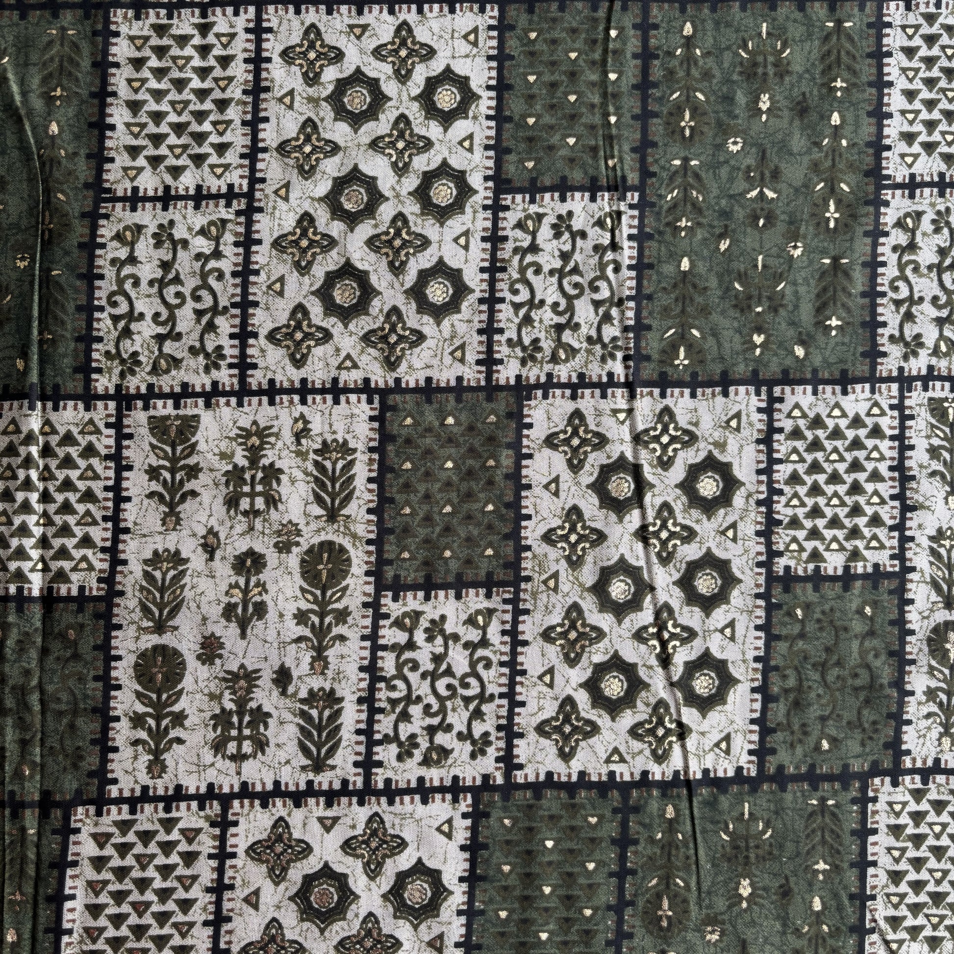 Green Traditional Foil Print Chanderi Silk Fabric 12075