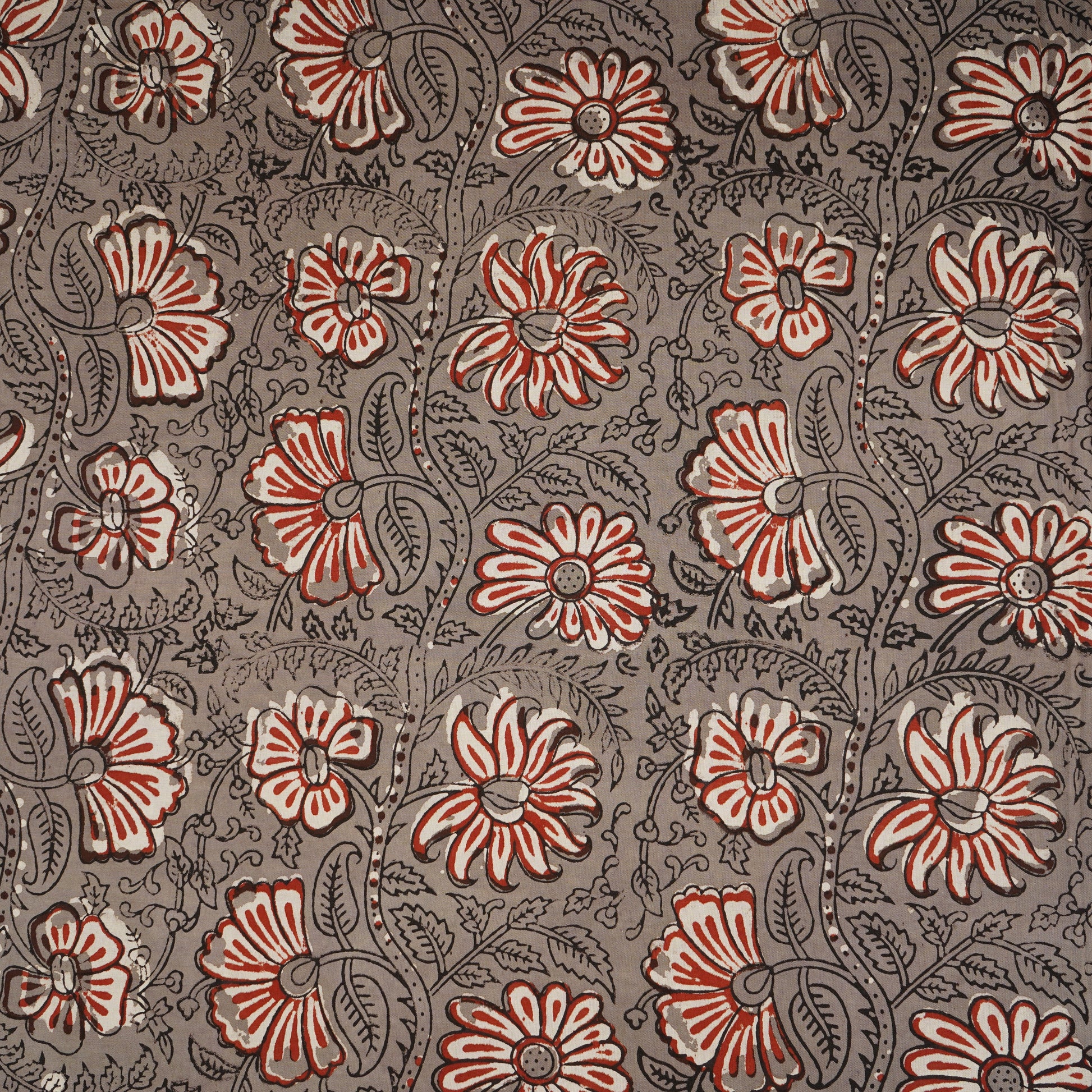 Grey & Red Kalamkari Print Cotton Fabric CH-29760