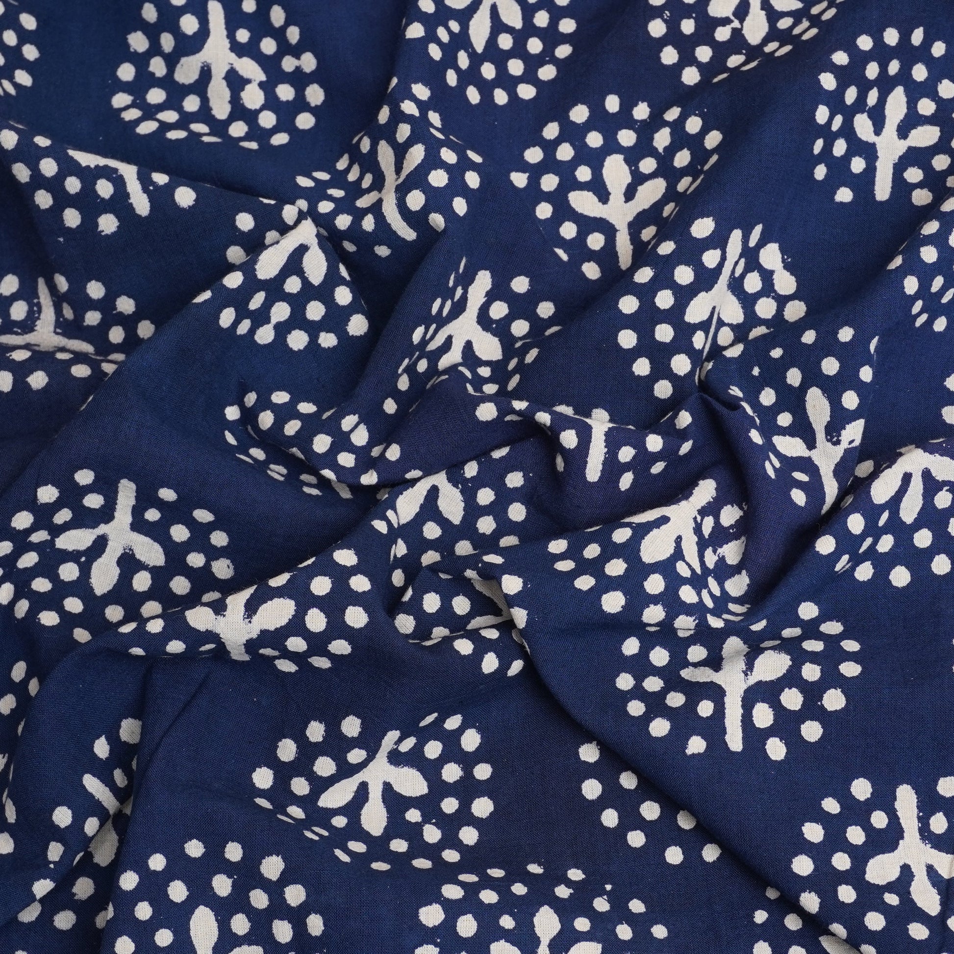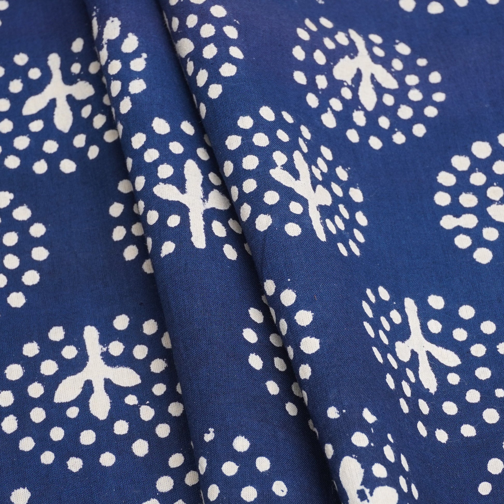 Indigo with White Dabu Print Cotton Fabric is a timeless ethnic textile featuring traditional hand block Dabu printing on soft, breathable cotton. The deep indigo base beautifully contrasts with intricate white motifs, giving it a classic Rajasthani charm. Ideal for kurtis, dresses, shirts, and home décor creations with elegant appeal.