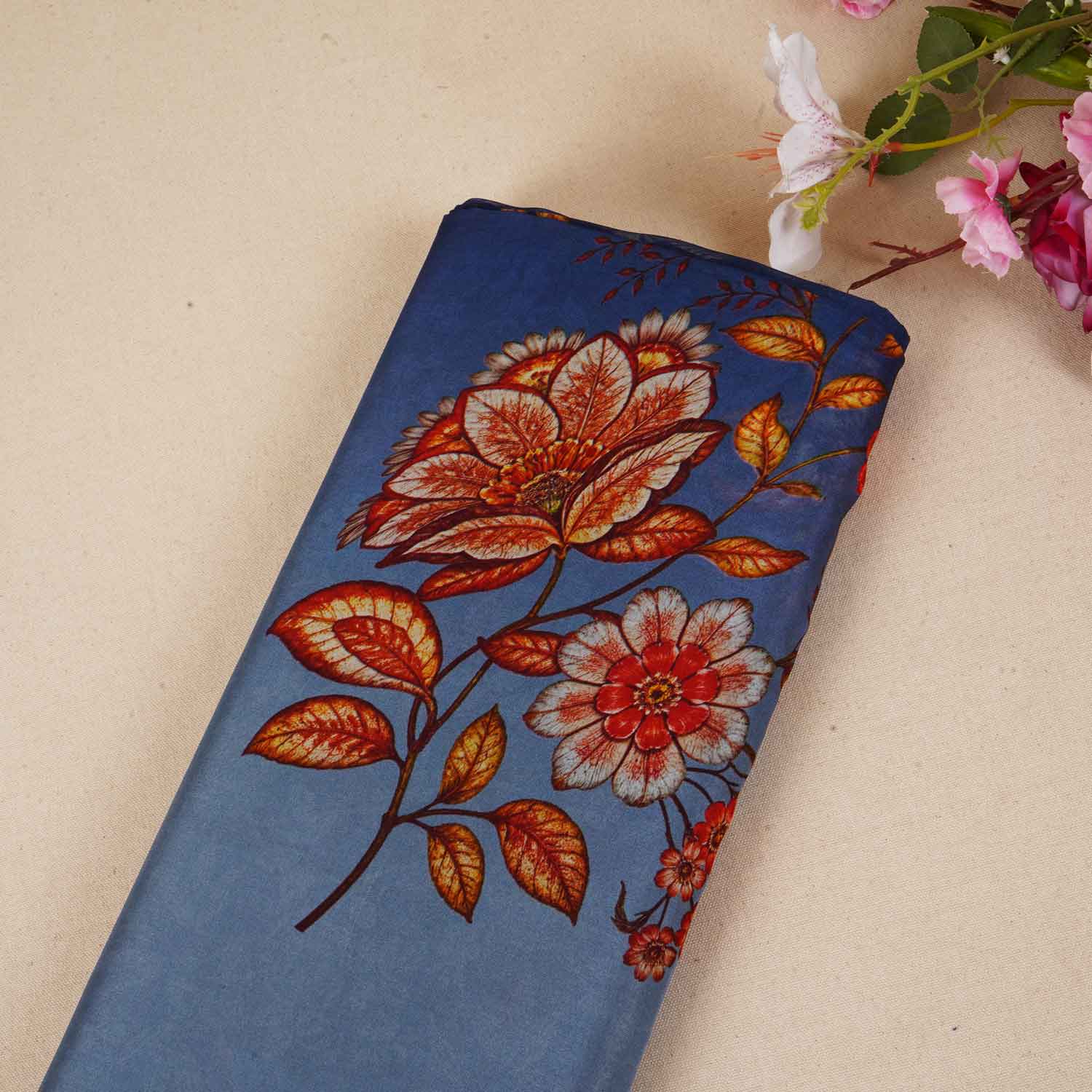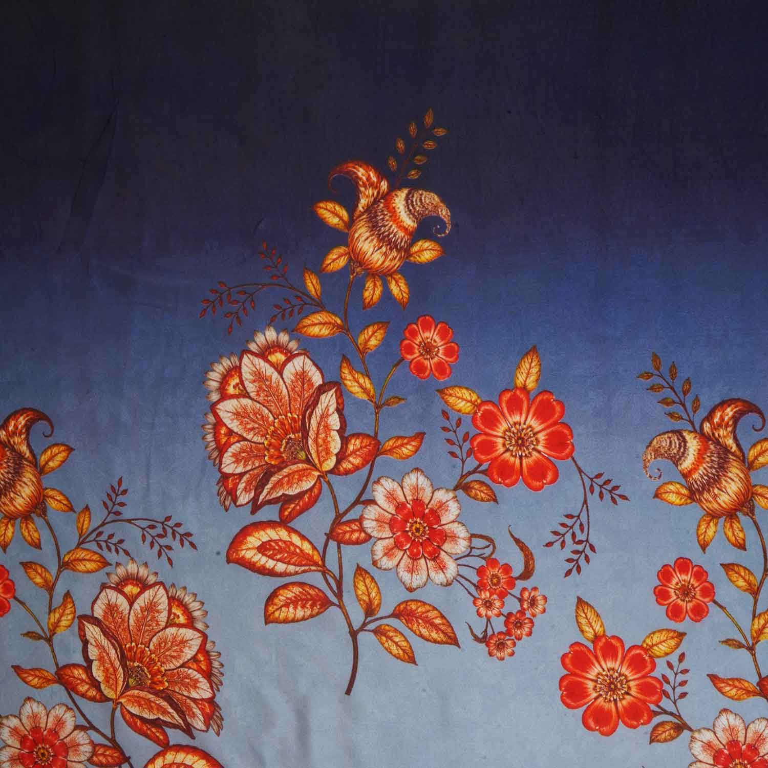 This Lavender & Navy Blue Shaded Floral Print Organza Fabric blends soft transparency with artistic floral tones. Ideal for sarees, dupattas, or statement suits that capture effortless elegance.