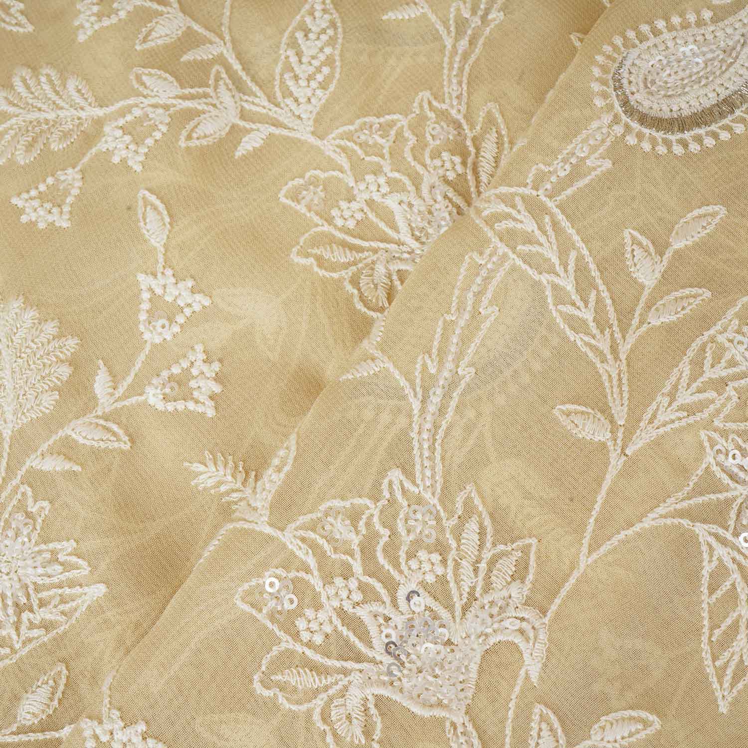 Product Name Lemon Yellow Floral Thread Sequins Embroidery Chikankari Georgette Fabric DRAJ-28285