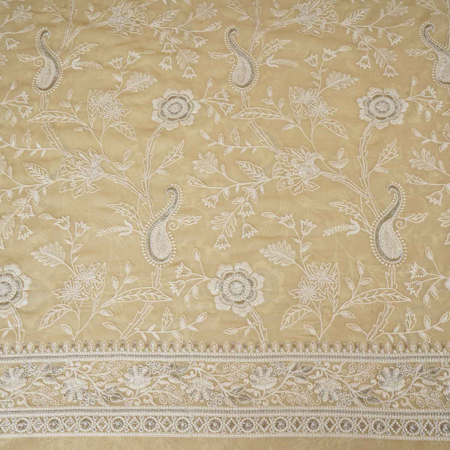 This Lemon Yellow Floral Thread Sequins Embroidery Chikankari Georgette fabric combines lively florals with subtle shimmer, making it perfect for sarees, suits, and occasion wear that radiate charm.