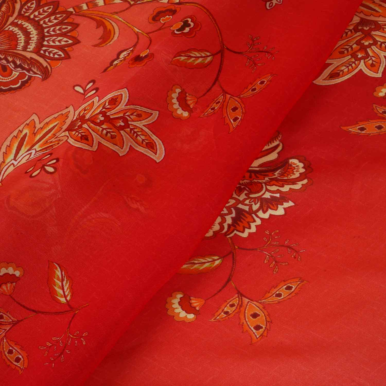 Product Name Light Orange & Red Shaded Floral Print Organza Fabric MT-28245