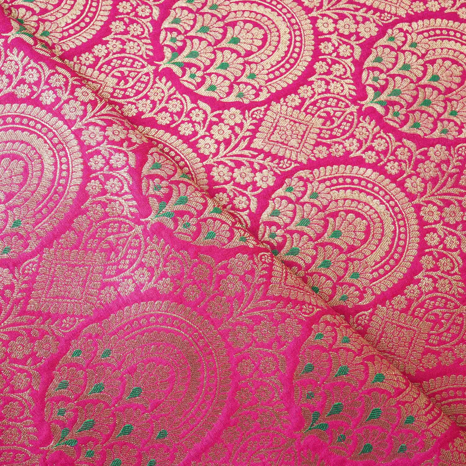 This Magenta Jaal with Mina Buta Brocade Fabric merges intricate craftsmanship with vibrant charm. Perfect for lehengas, kurtas, or festive ensembles that radiate elegance.