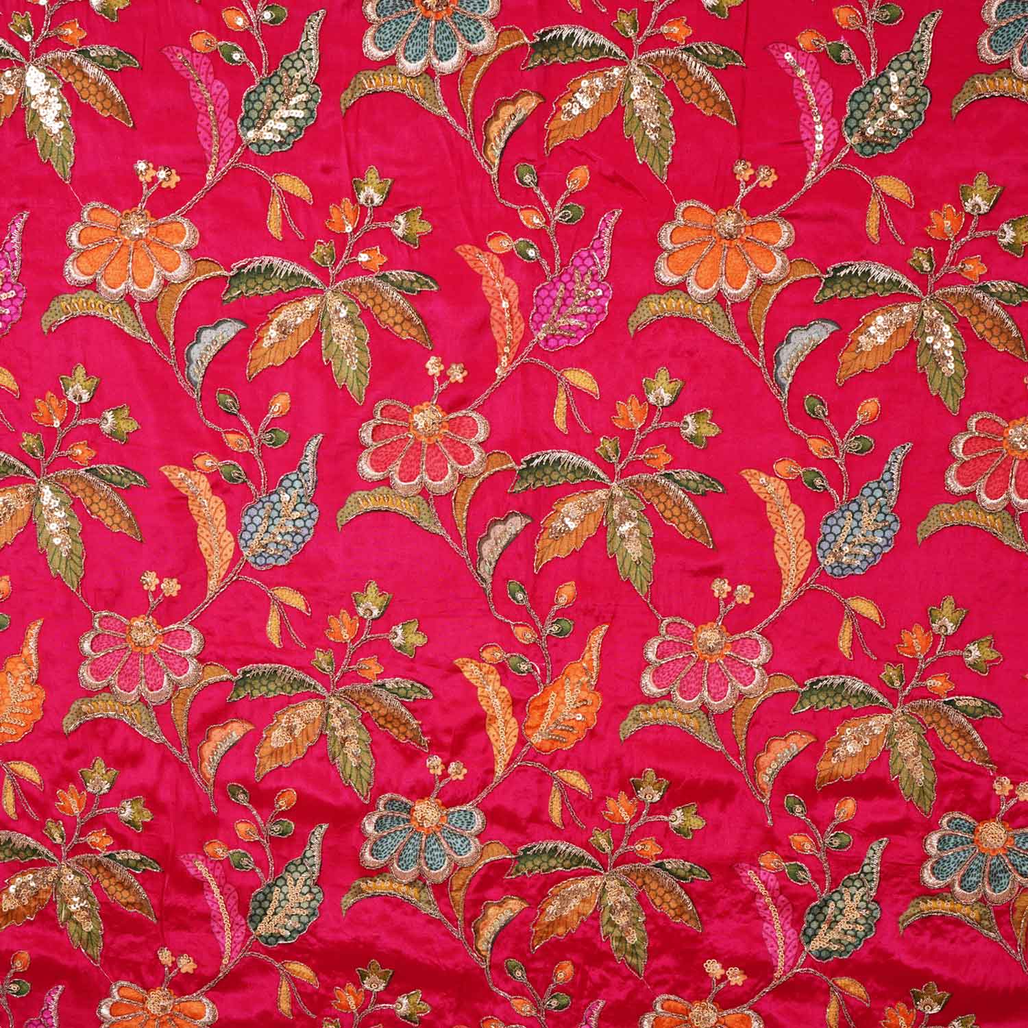 Product Name Magenta Pink Floral Position Zari Embroidery Crepe Fabric VC-28036