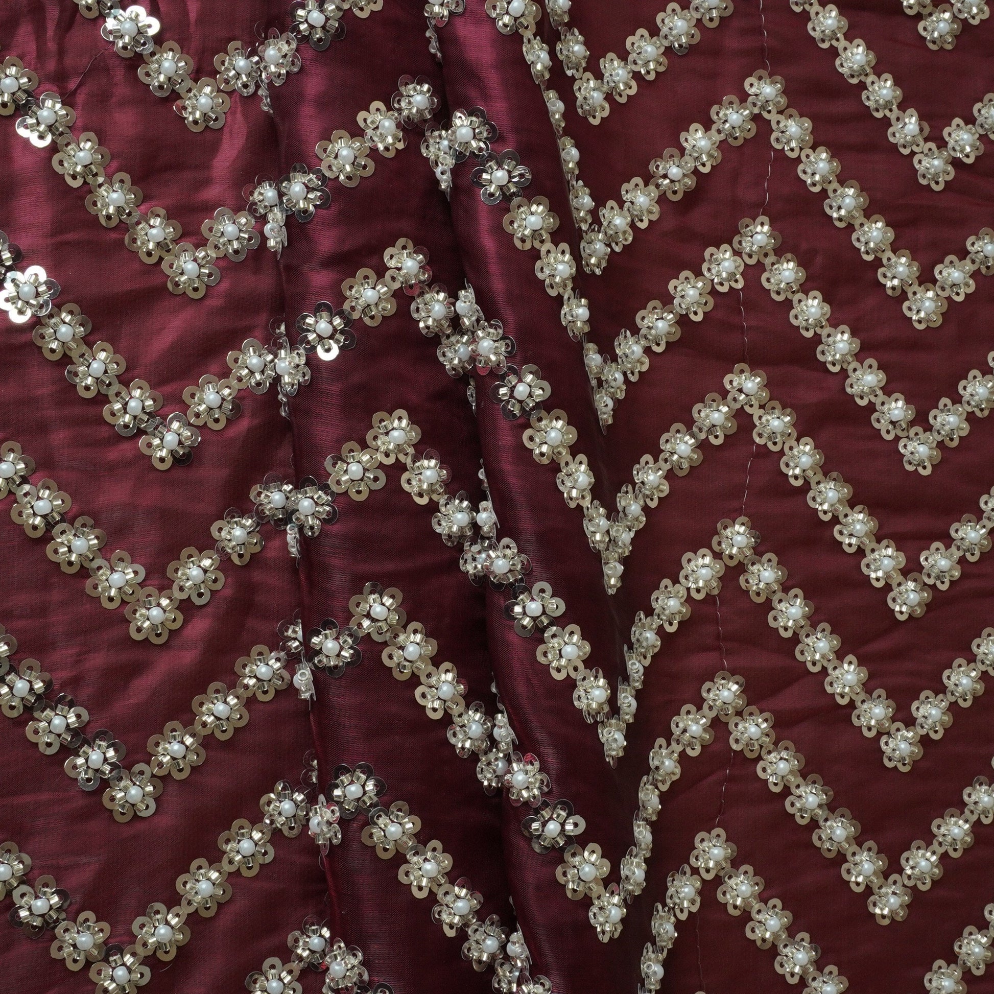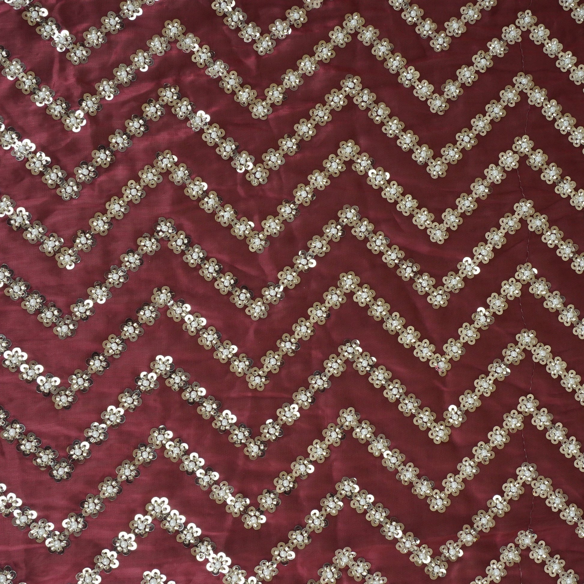 Product Name Maroon sequence cutdana embroidery Organza Fabric LI-29198