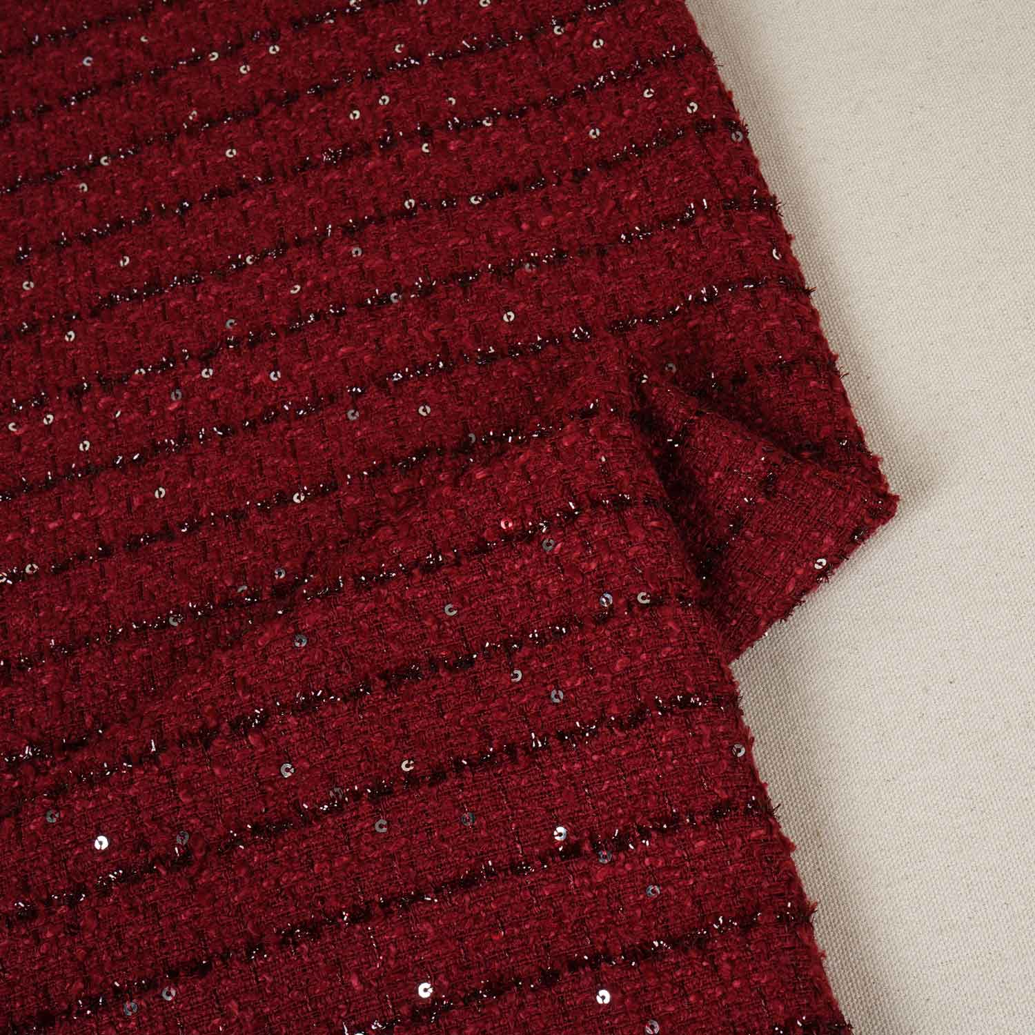 This maroon Tweed fabric merges regal hues with artisanal charm. The shimmer of Tweed meets the soul of heritage craft, creating a rich base for lehengas, kurtas, or festive sets that exude cultural pride.