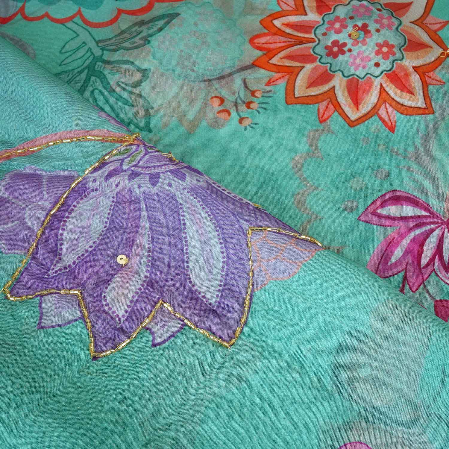 Product Name Mint Green Cutdana Hand Work Floral Print Organza Fabric MT-28289