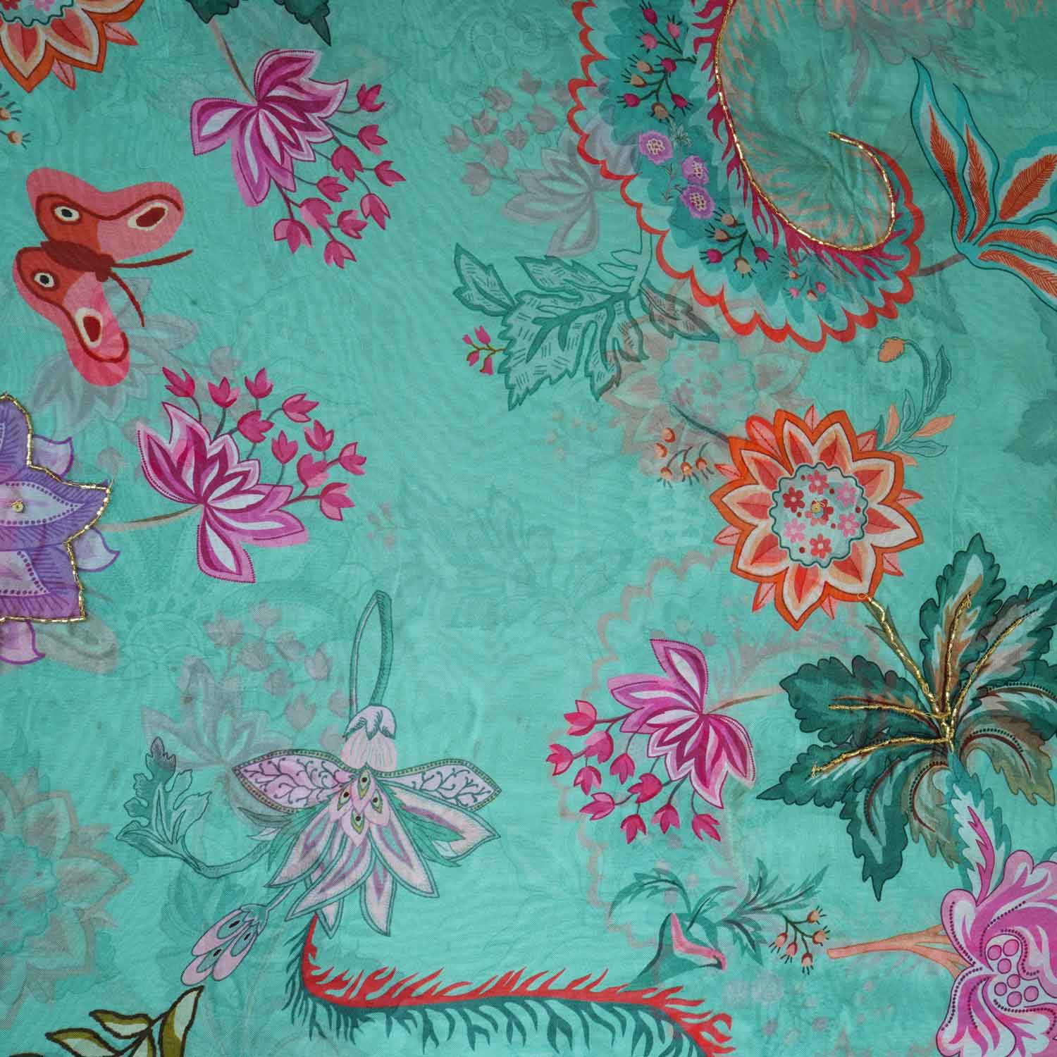 Mint Green Cutdana Hand Work Floral Print Organza Fabric MT-28289