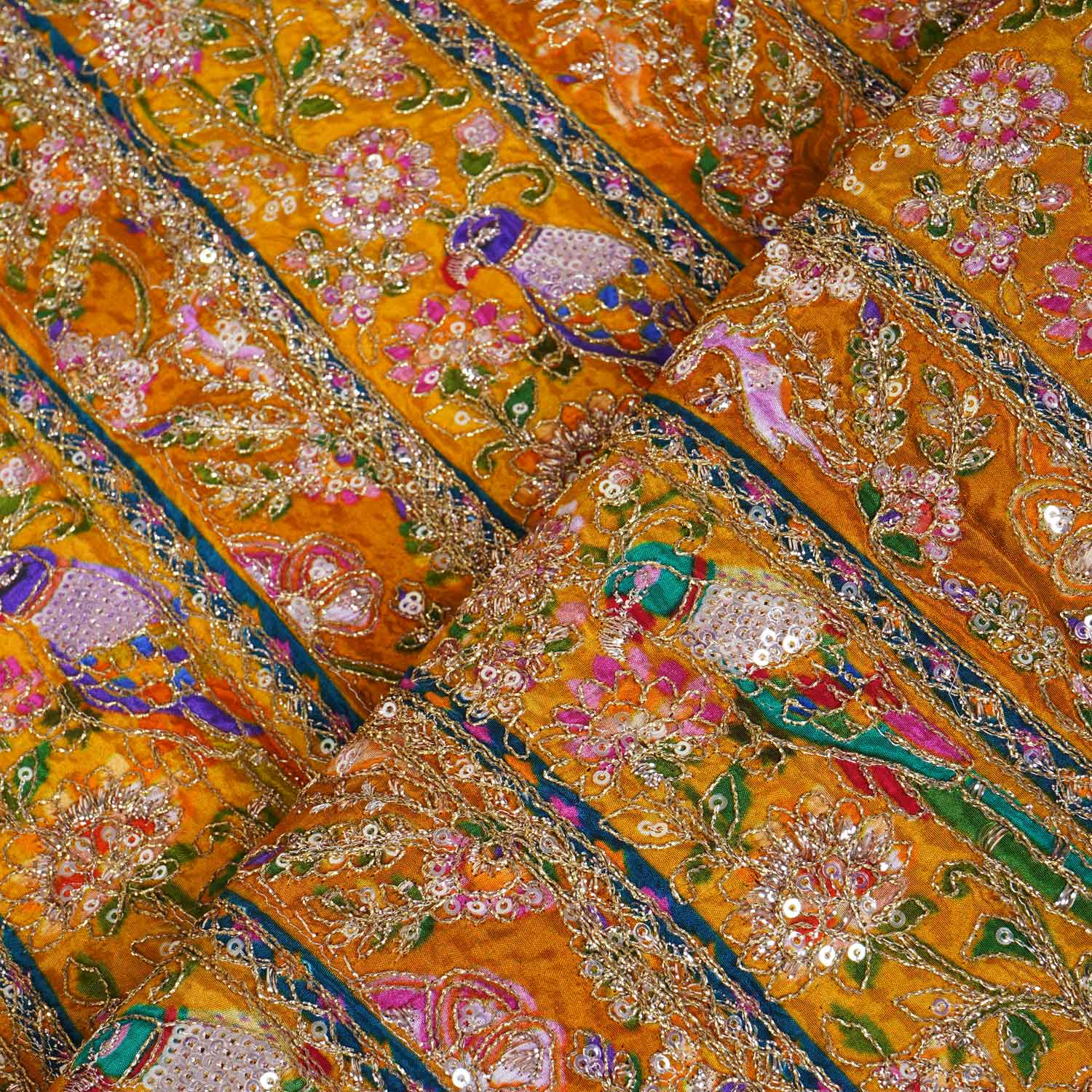 Product Name Mustard yellow Multicolour Zari Embroidery Crepe Fabric HCS-27910