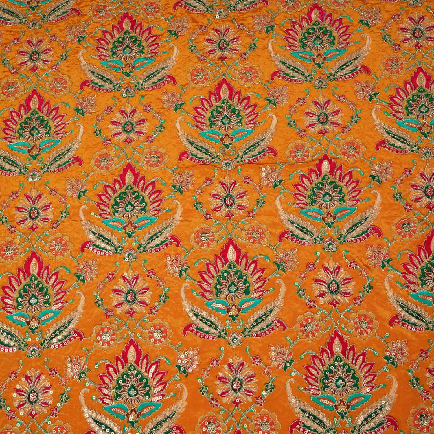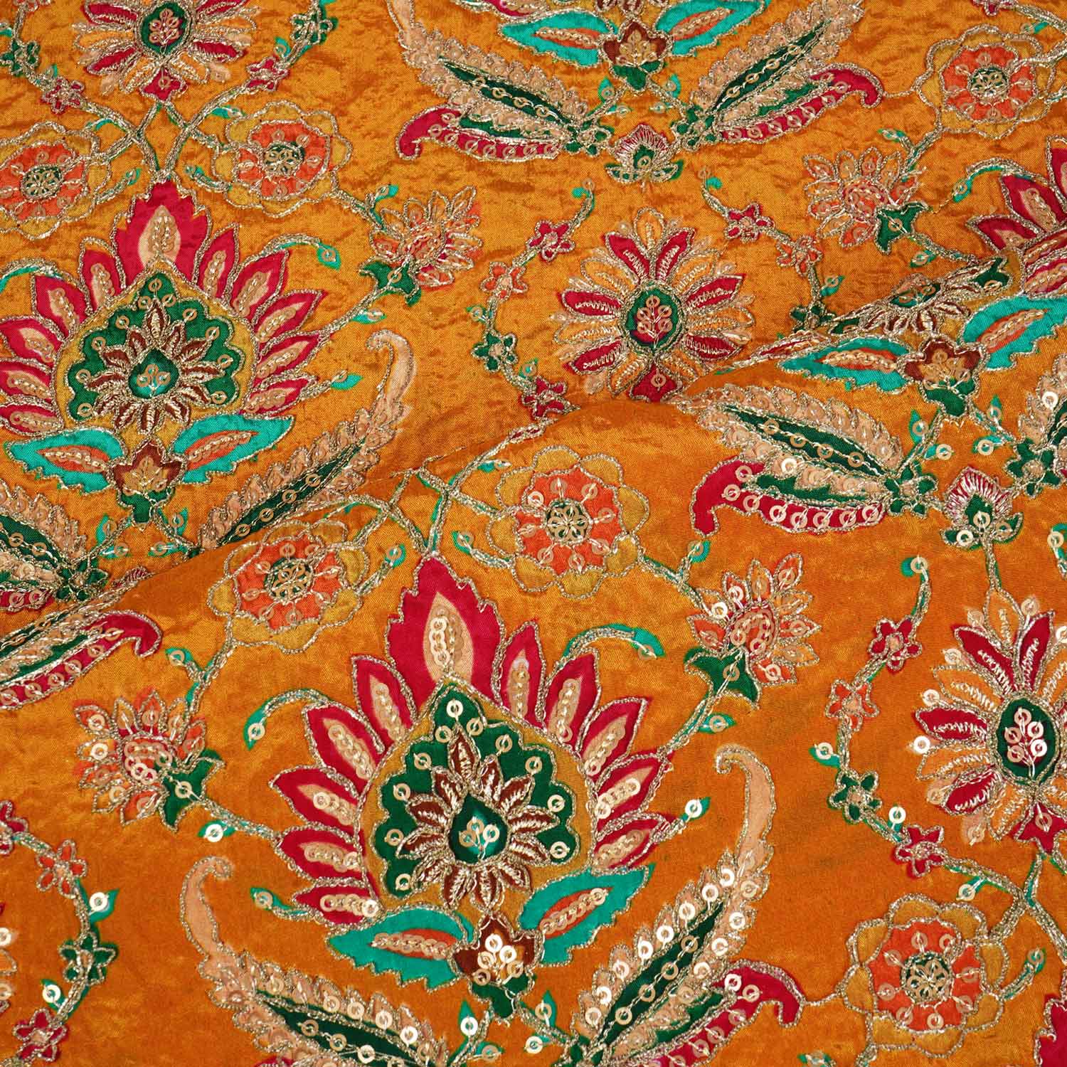 Product Name Mustard Yellow Position Print Zari Embroidery Crepe Fabric NF-28001