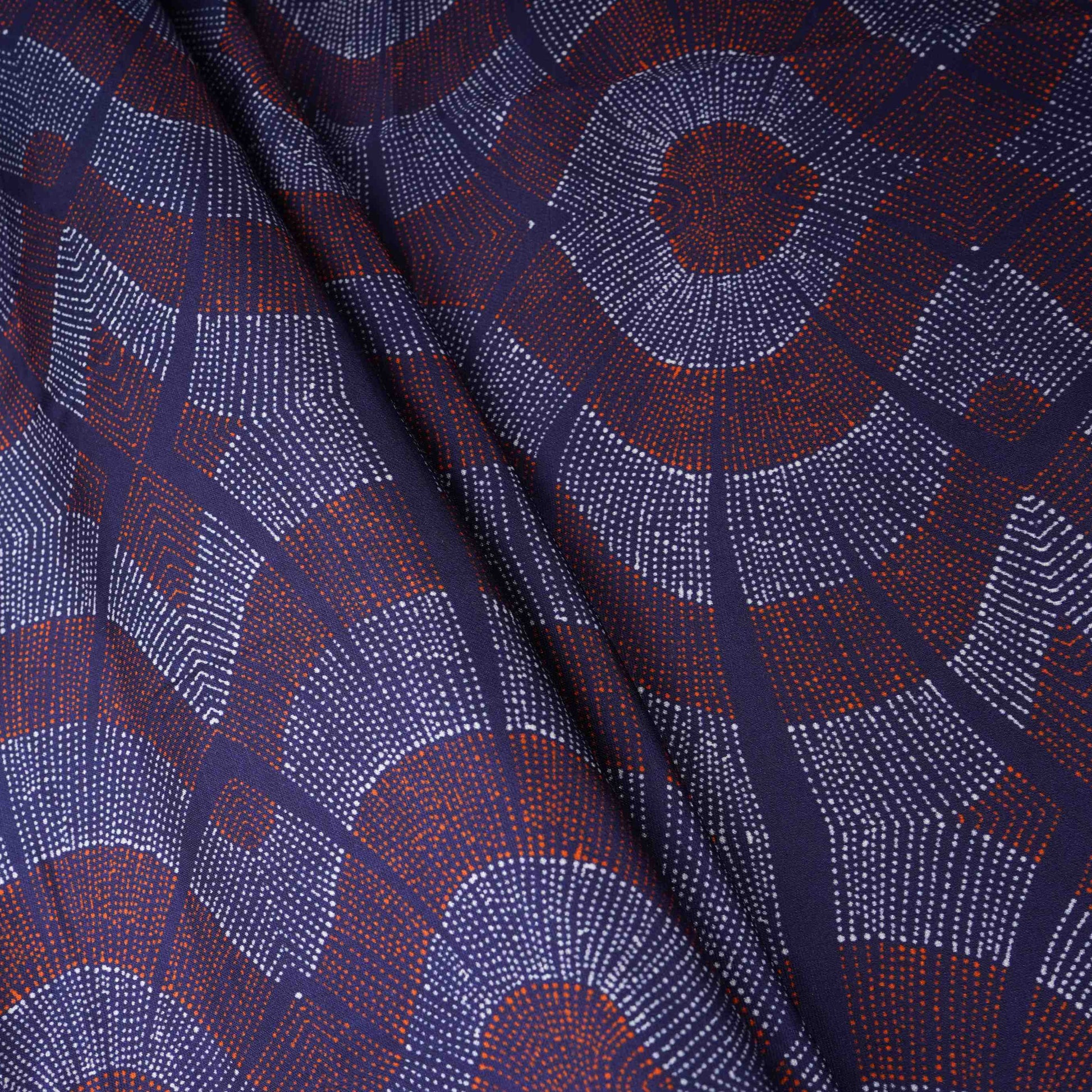 Product Name Navy Blue Abstract Print Satin Linen Fabric MT-30979