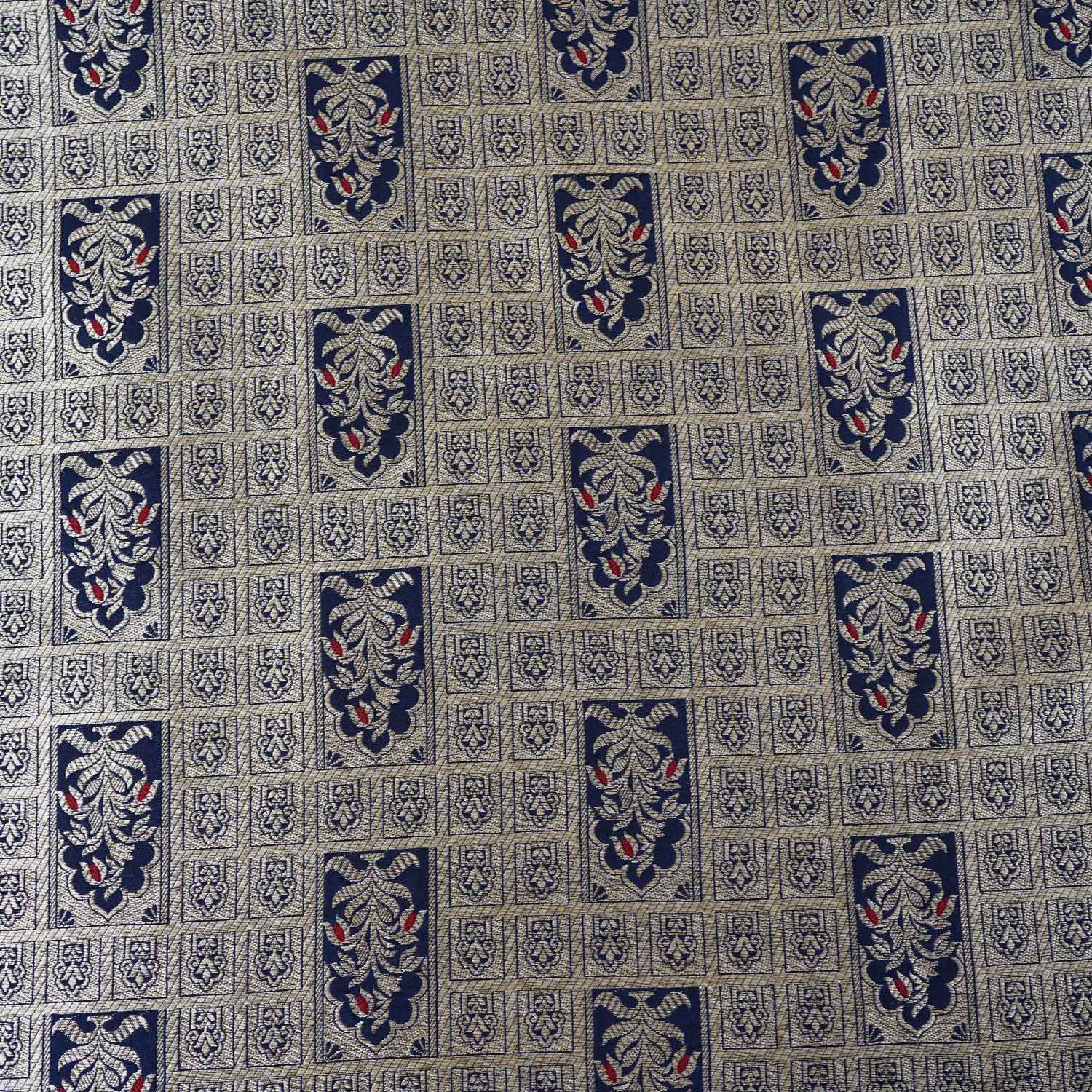 Navy Blue Silver Jharokha Fabric NH-28916