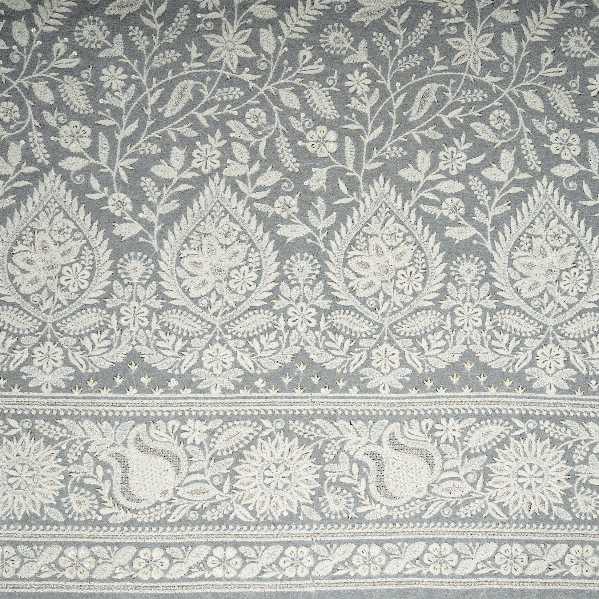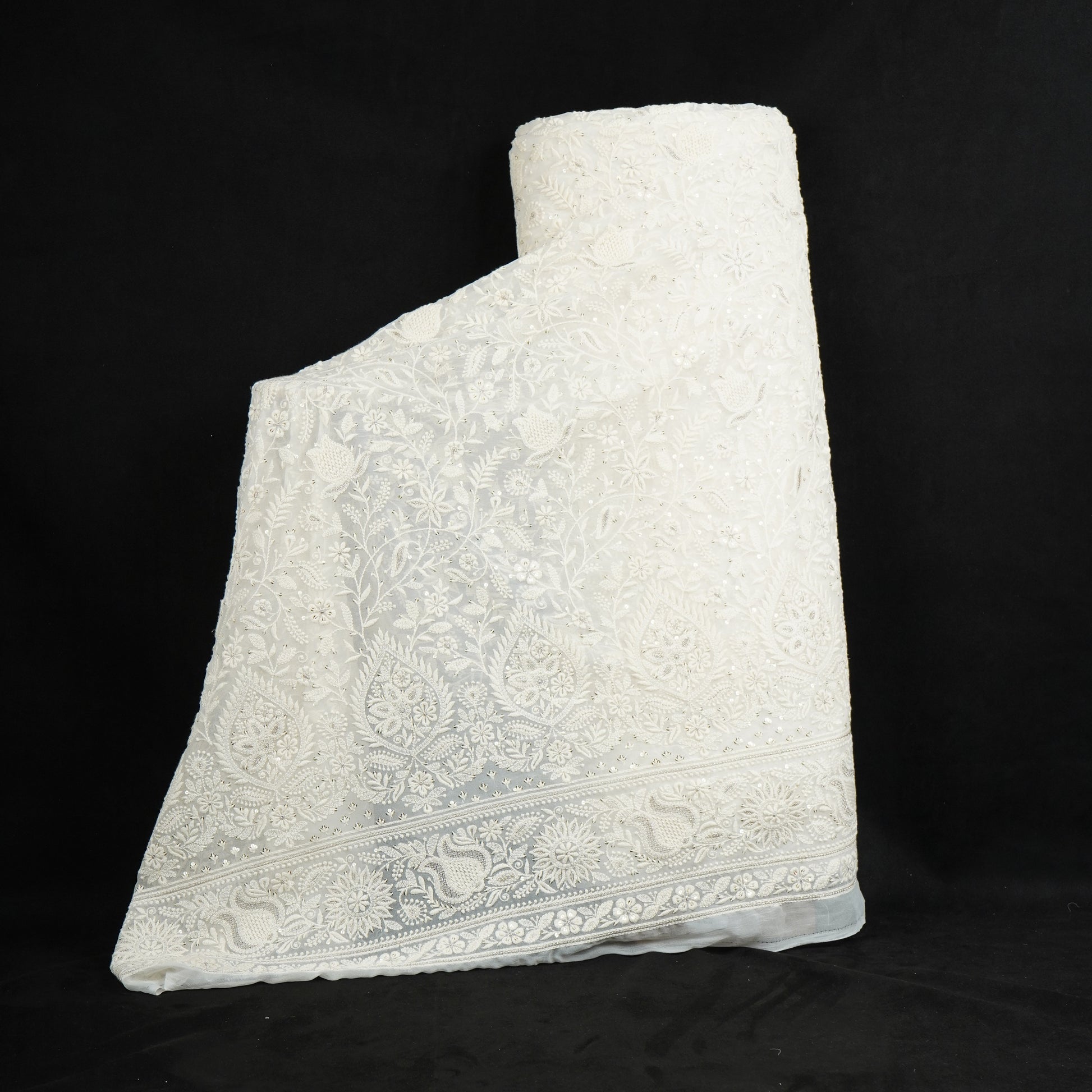 Off White Dyeable Mirror Embroidery Georgette Fabric AT-30349