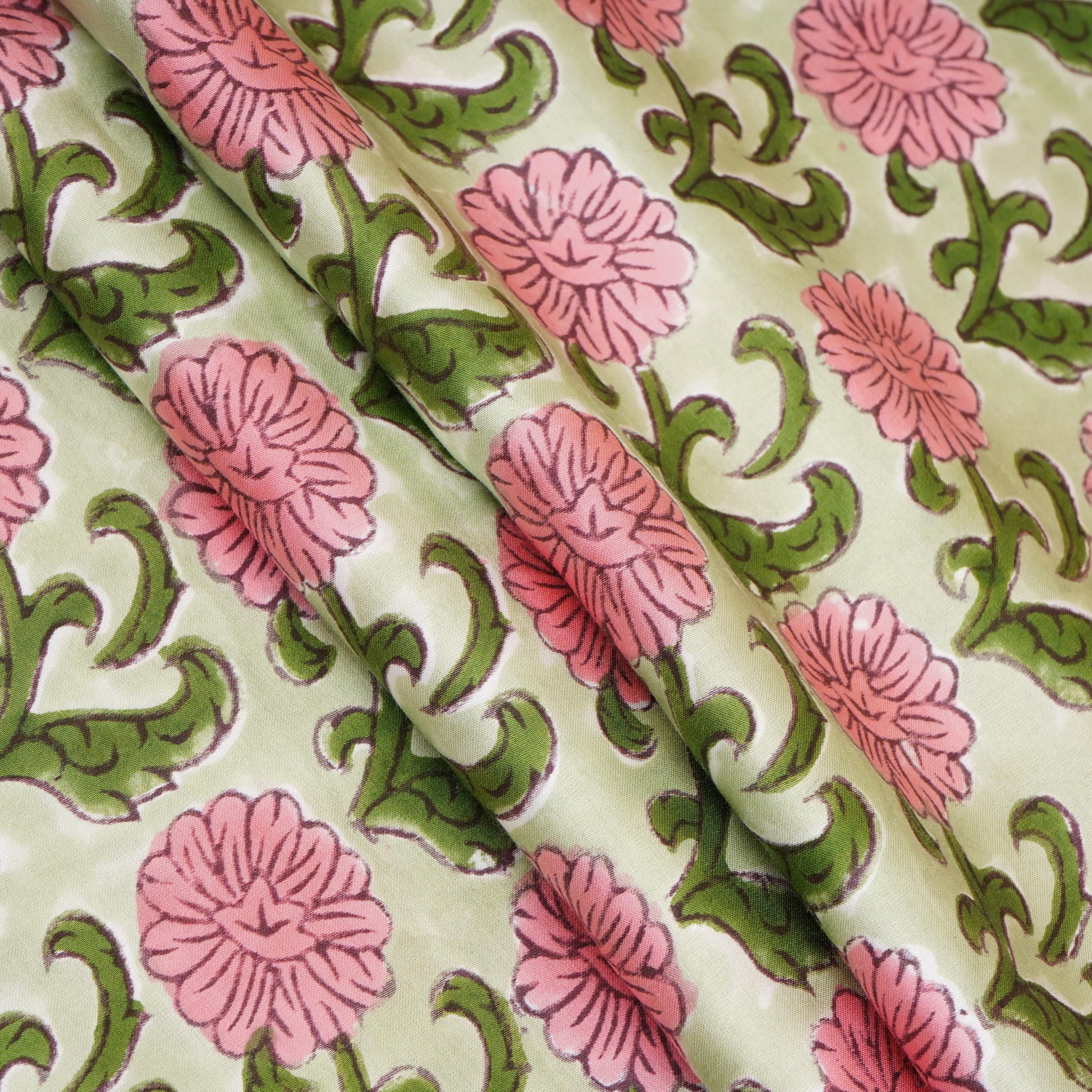 Olive Green Floral Print Modal Satin Fabric features a smooth, silky texture with a soft, luxurious drape. Crafted from premium modal satin, it offers a subtle sheen and lightweight comfort. The elegant floral design adds a refreshing, graceful touch, making it perfect for dresses, tops, skirts, and stylish ethnic wear creations.