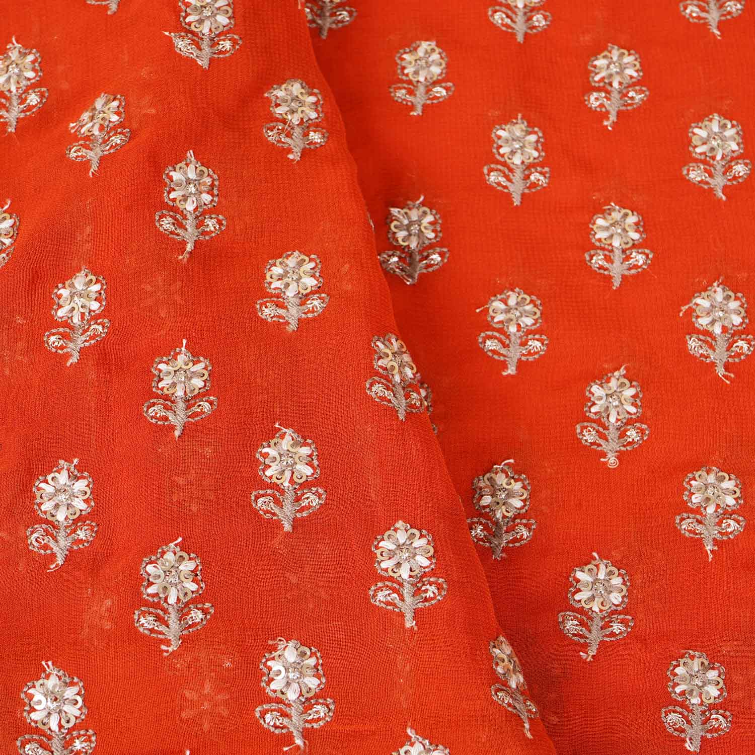 Product Name Orange Sabyasachi Zari Embroidery Georgette Fabric DR-28016