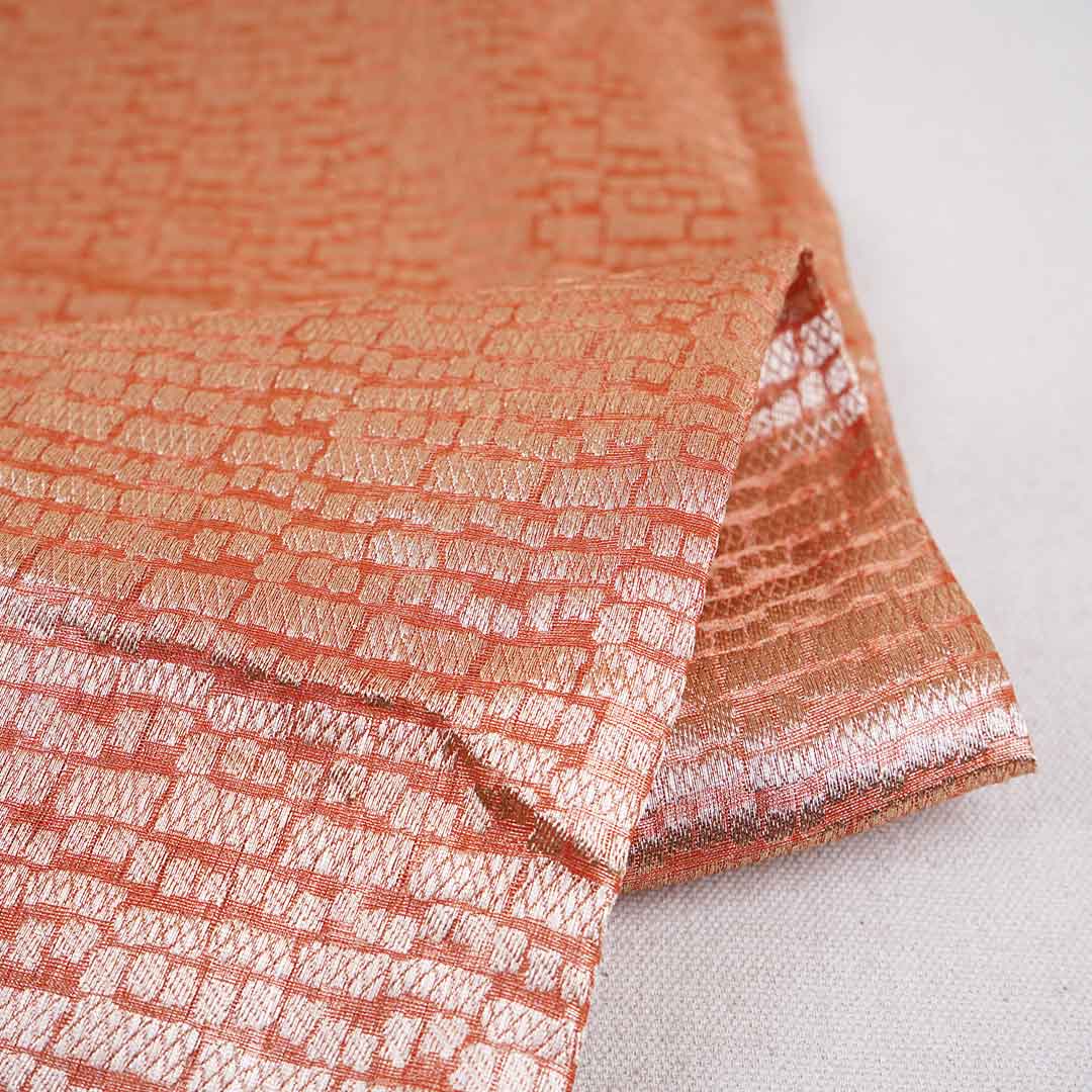 Product Name Orange Zari Weave Silk Tissue Fabric CW-28949