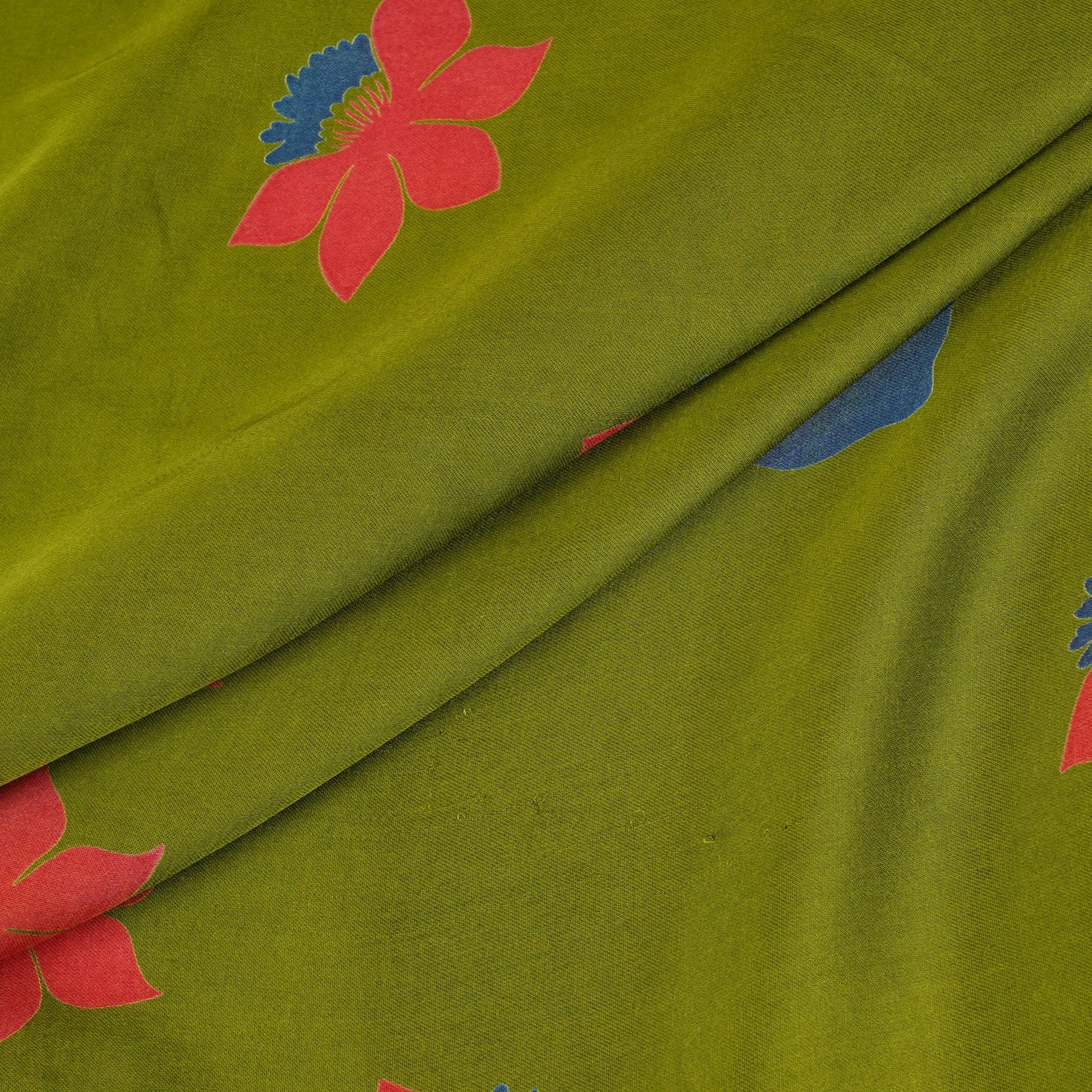 Product Name Parrot Green Floral Print Modal Satin SN-29525