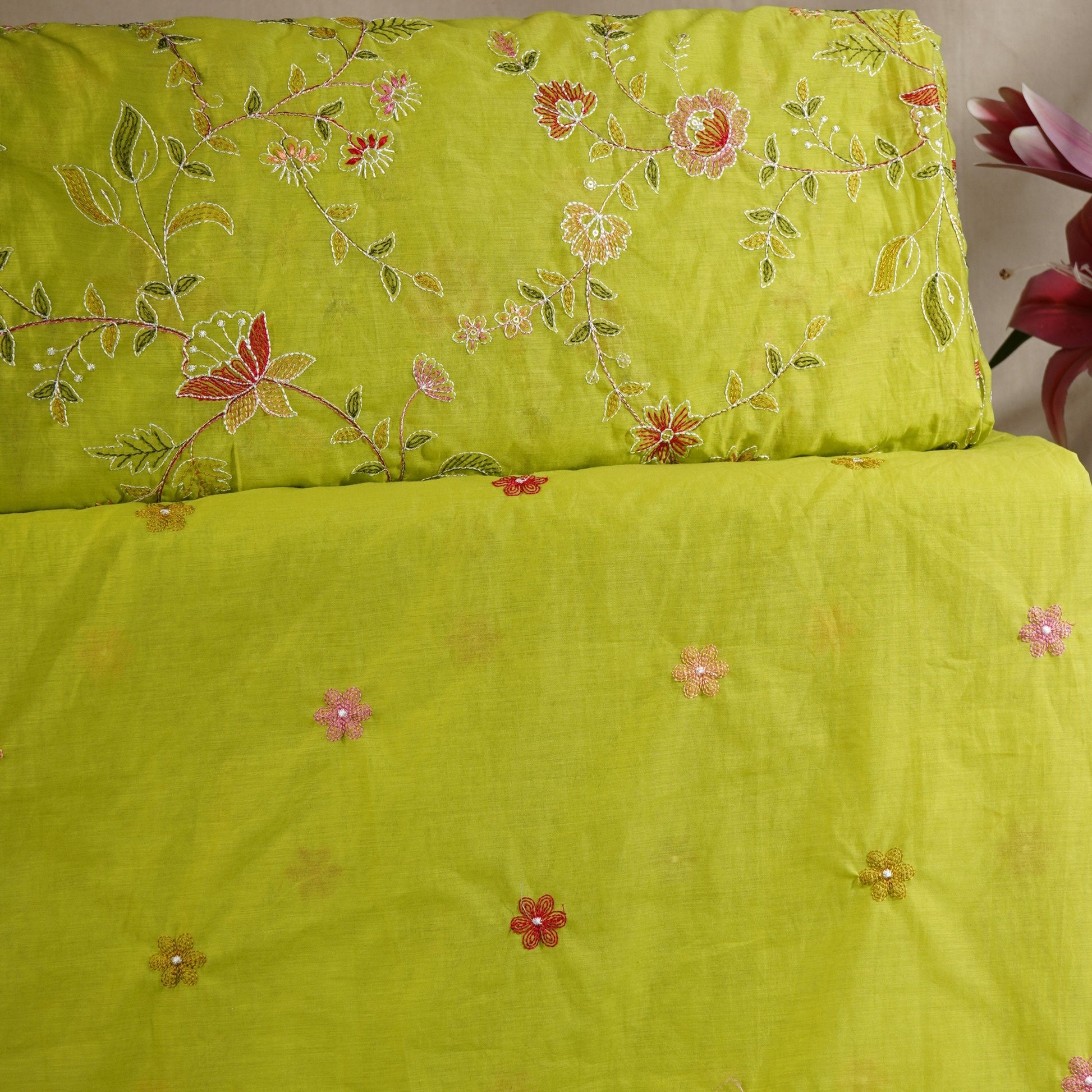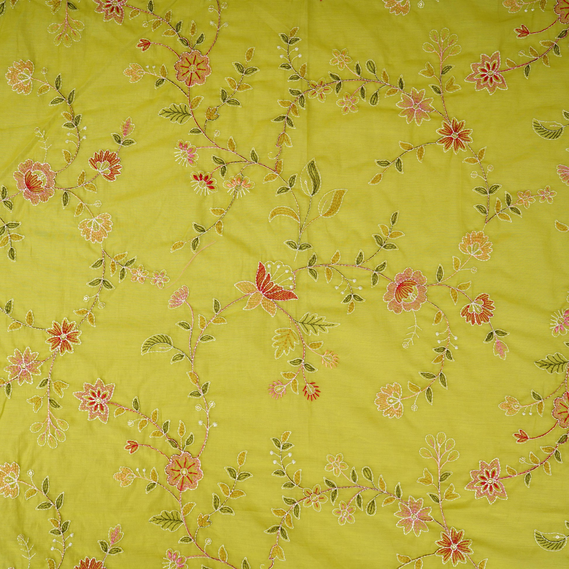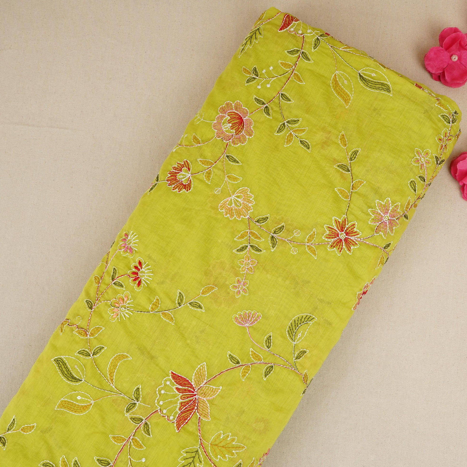 Product Name Parrot Green Mughal embroidery Mul Chanderi Fabric DC-29676
