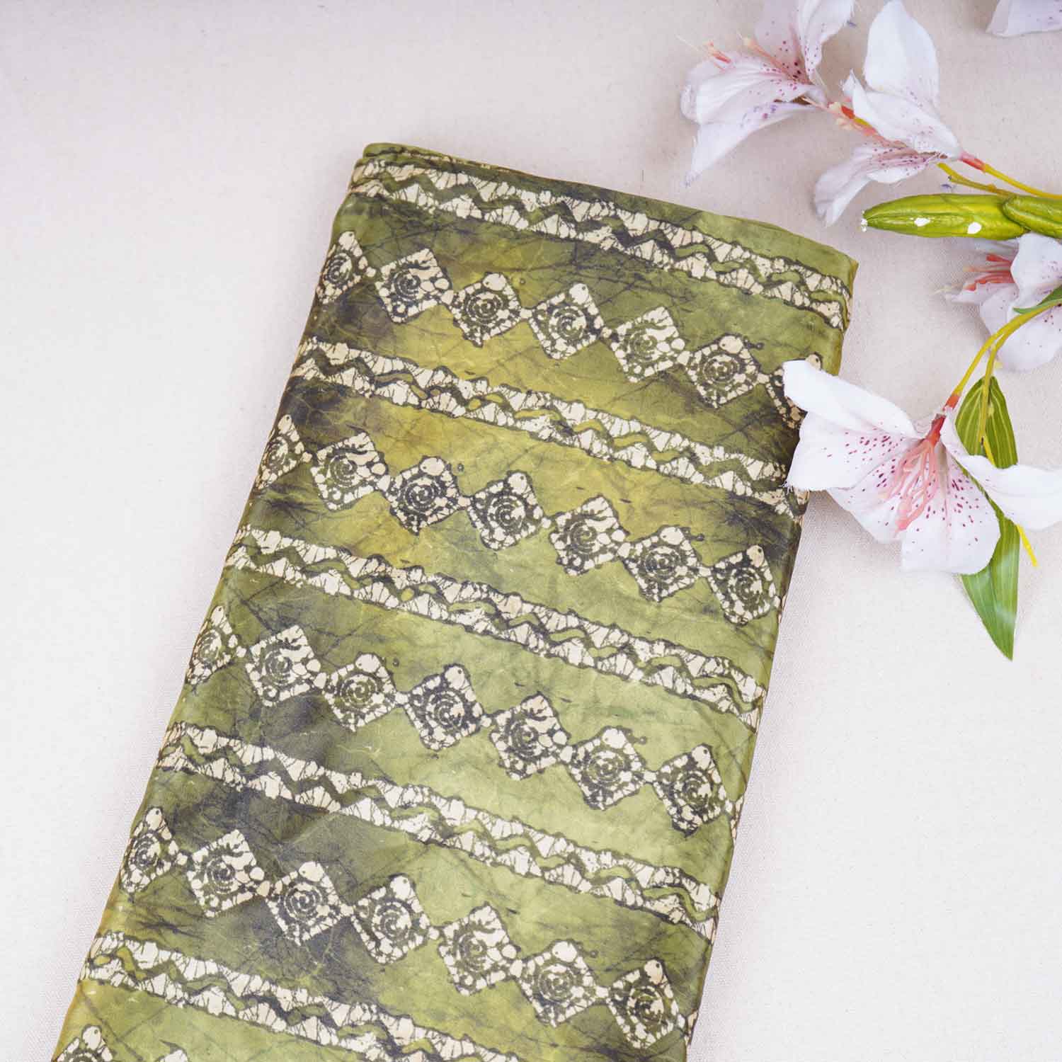 Product Name Parrot Green Strips Print Crepe Fabric GT-29188
