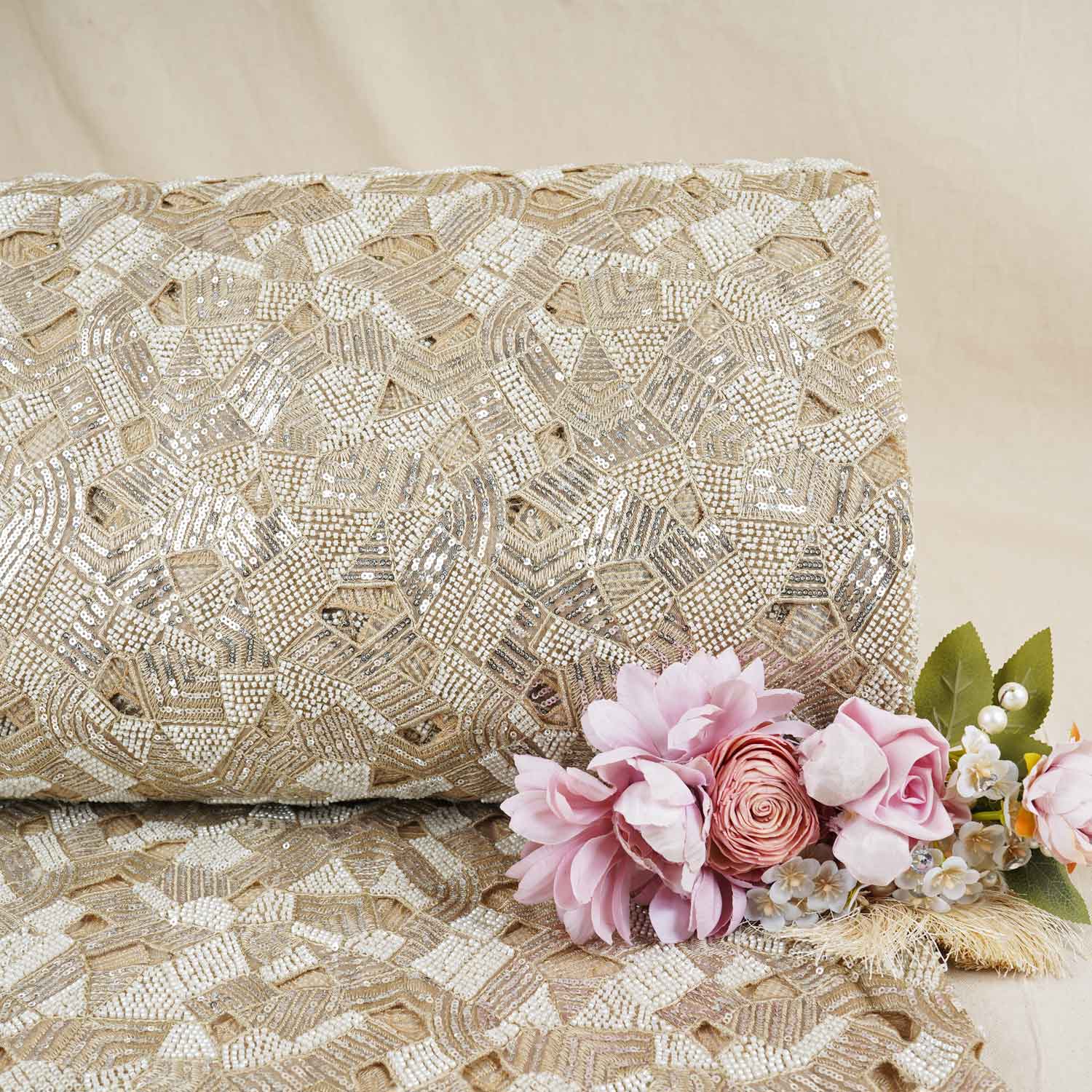 This Peach Cutwork Embroidery Net Fabric features delicate cutwork embroidery layered over a fine net base for a soft and graceful appearance. The lightweight texture allows easy draping while the embroidery adds richness and detail. Its gentle peach shade offers a subtle festive charm, making it perfect for sarees, dupattas, lehengas or elegant outfits that feel refined and feminine.