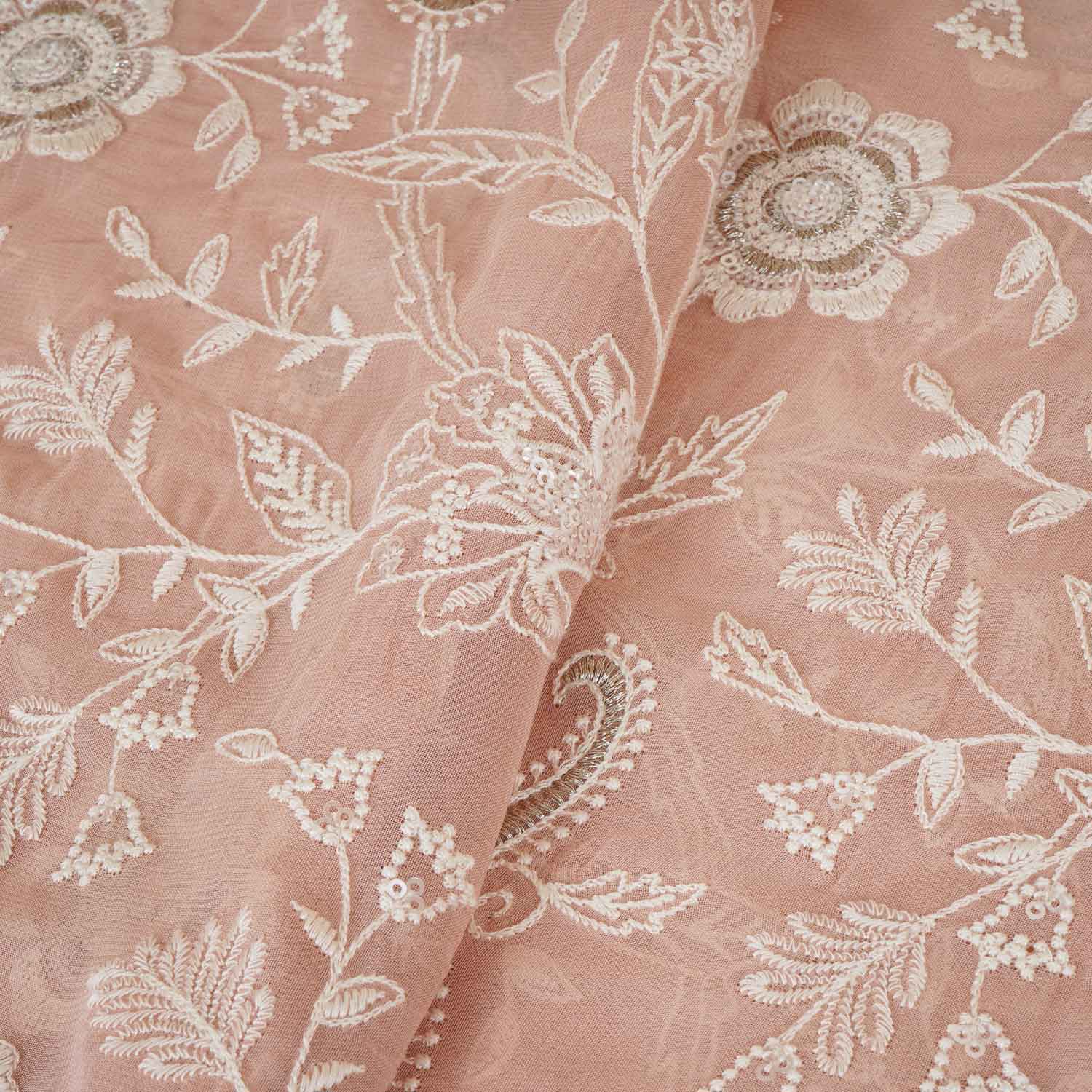 Product Name Peach Pink Floral Thread Sequins Embroidery Chikankari Georgette Fabric DRAJ-28283