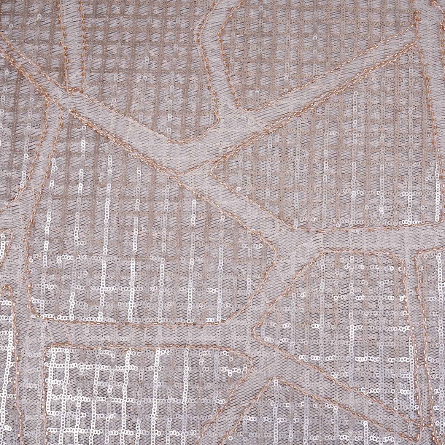 This Peach Sequin Embroidery Net Fabric brings a soft glow with its delicate peach tone and subtle sequin embroidery. Lightweight and fluid, it works well for festive layers, gowns or drapes that need shimmer without overpowering the look. A great choice for romantic and elegant occasion wear styles.